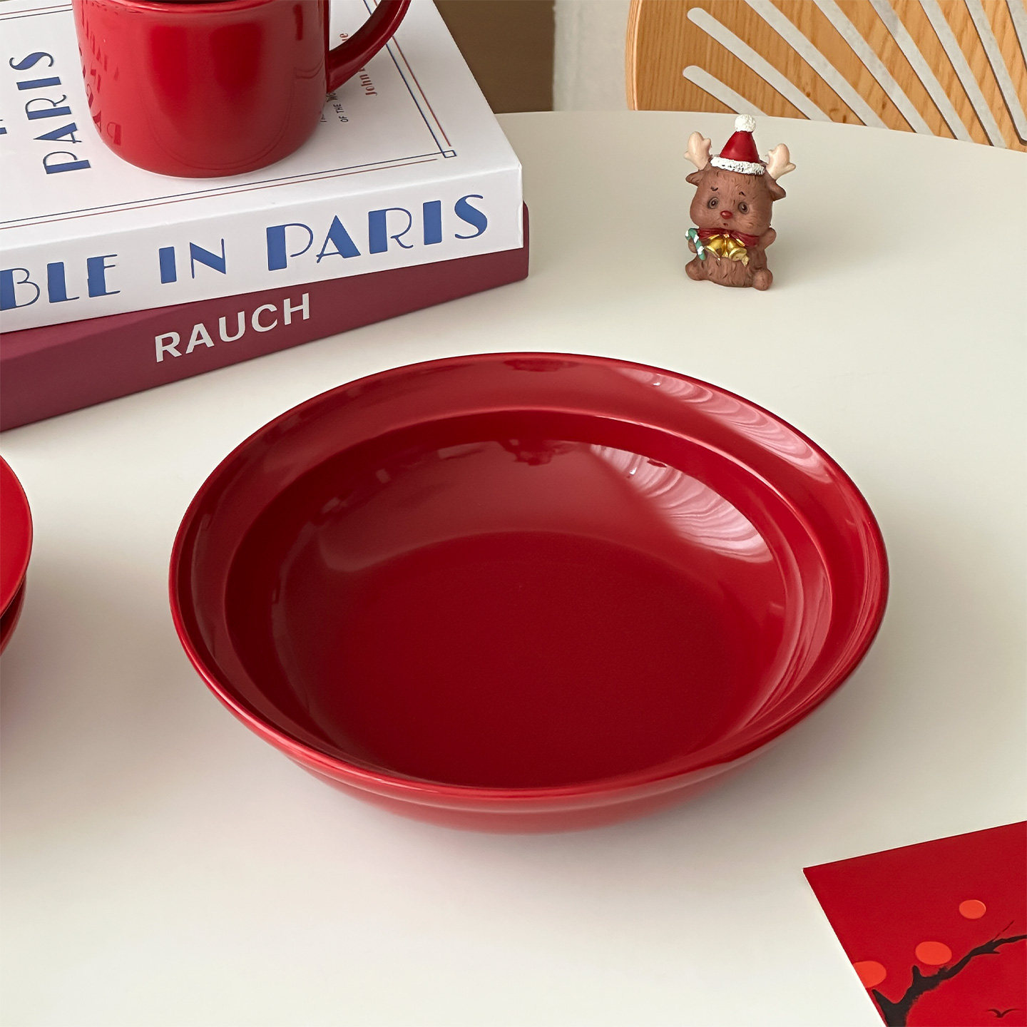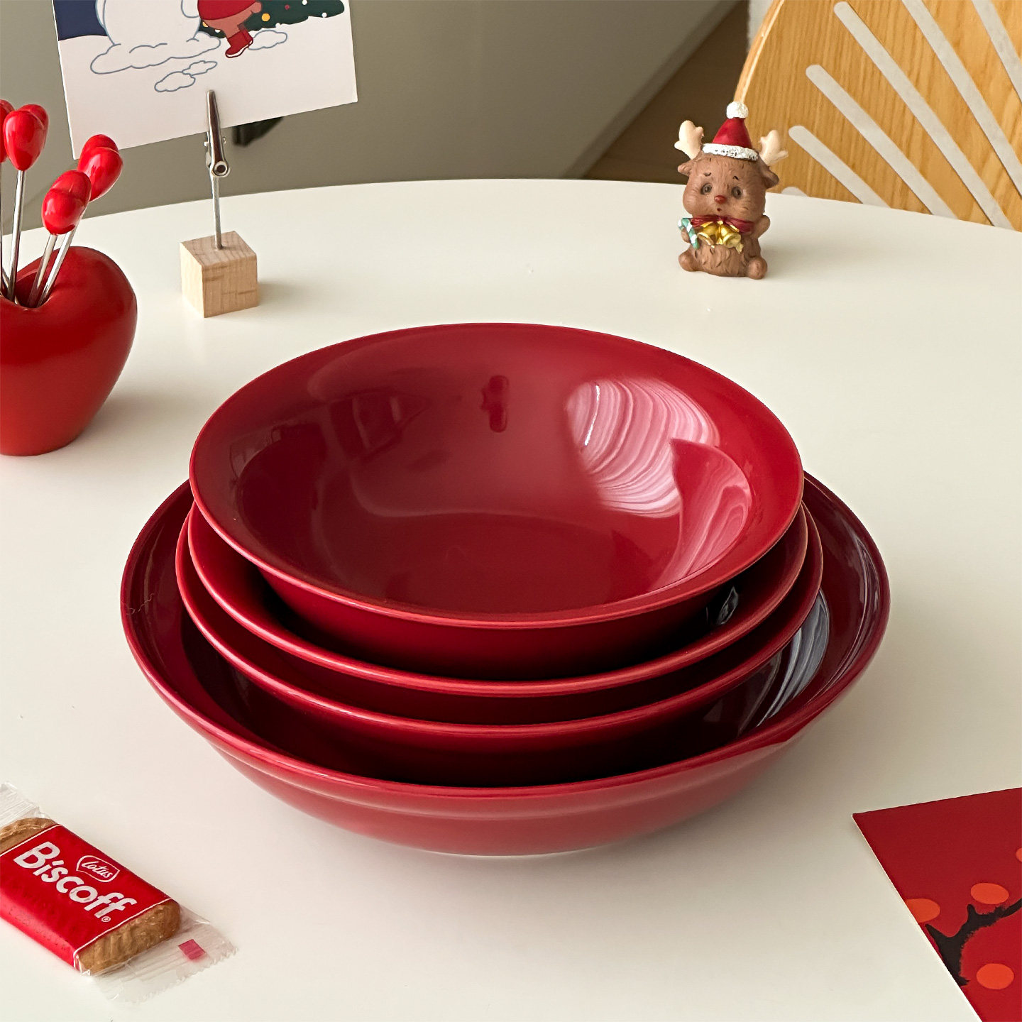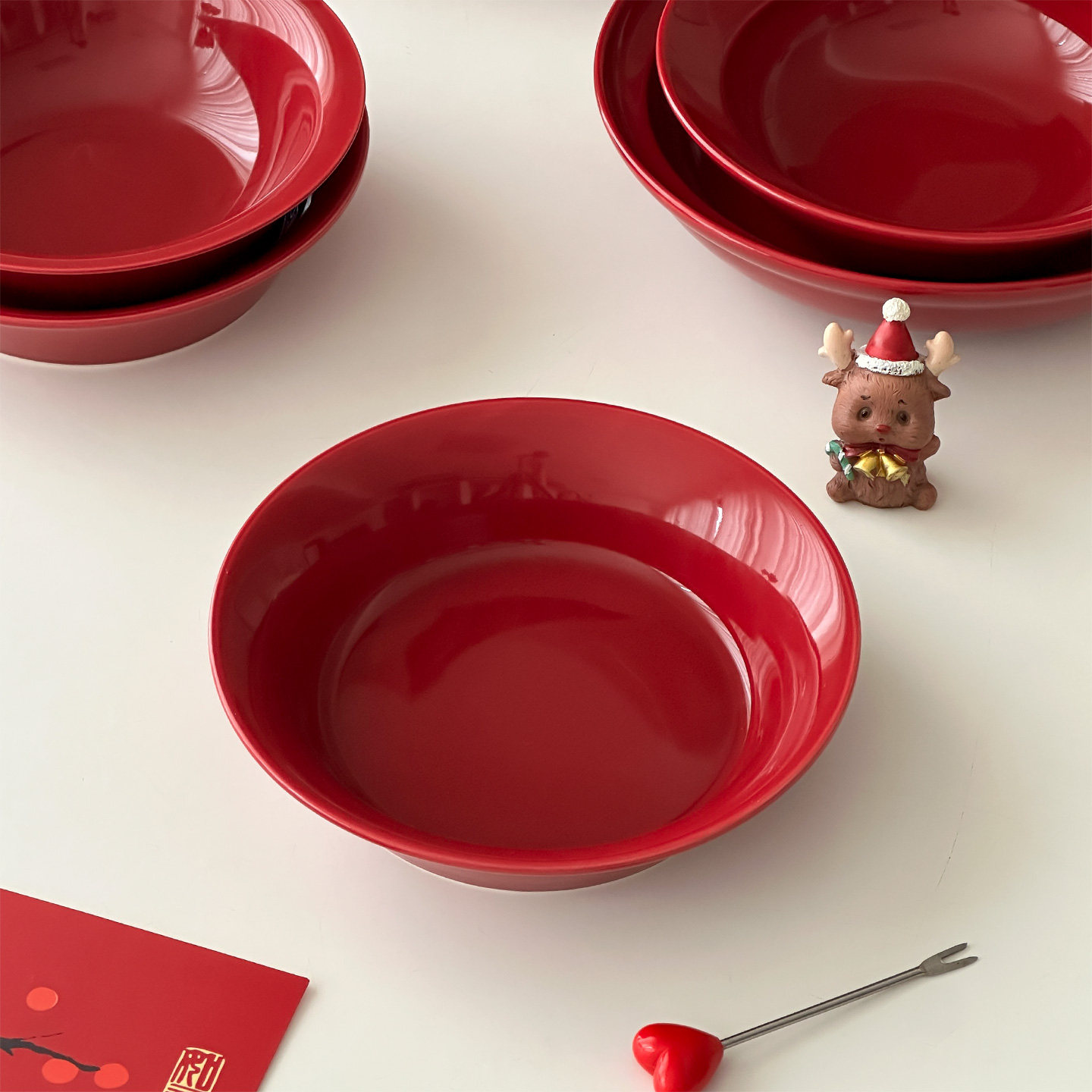 穆尼 红色餐具过年圣诞家用碗喜庆结婚乔迁礼物高颜值沙拉意面碗
