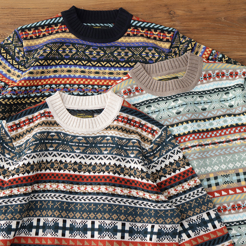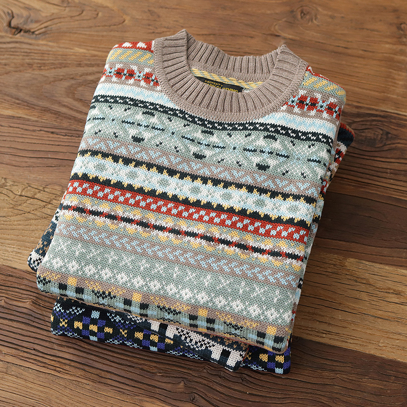 英式复古提花费尔岛毛衣男圆领外穿内搭羊毛混纺休闲针织衫秋冬