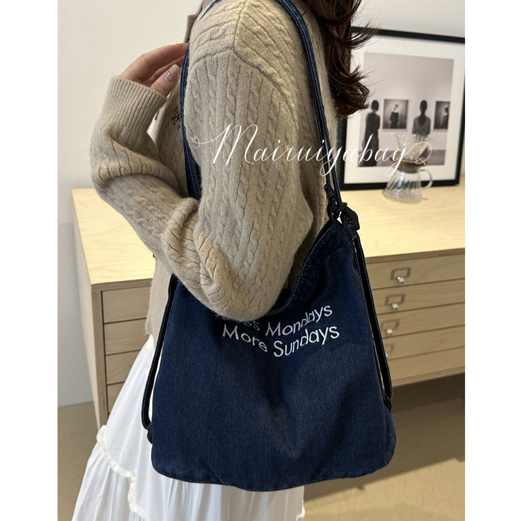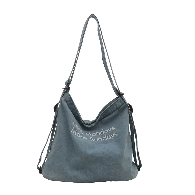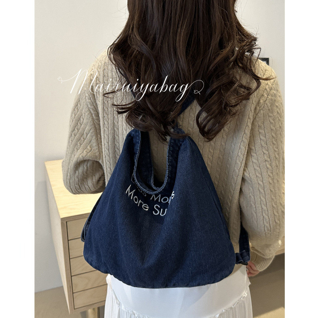 秋季大容量学院风通勤牛仔帆布包包女2024新款多用双肩手提托特包