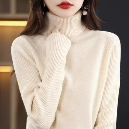 鄂尔多斯市绵羊绒衫女高领针织内搭宽松翻领打底衫女冬季厚款