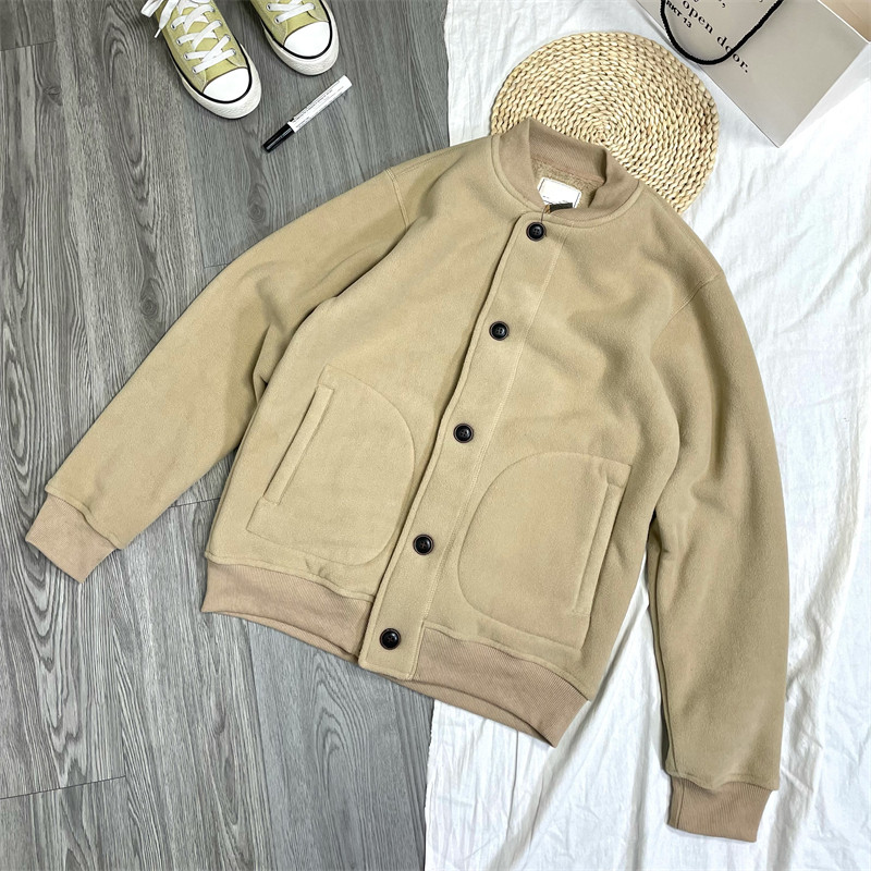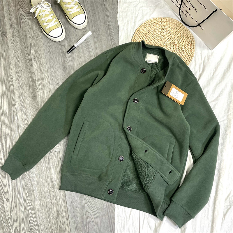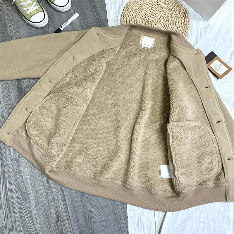 日系简约~加绒棒球服!复古加厚仿羊羔绒休闲保暖外套夹克