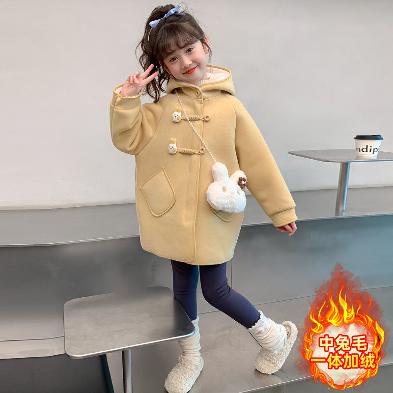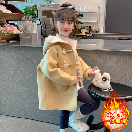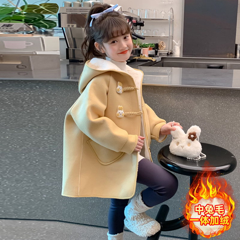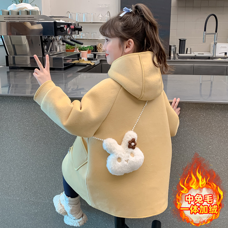 女童毛呢外套2025冬装新款加绒加厚中大童女孩冬季儿童呢子大衣冬