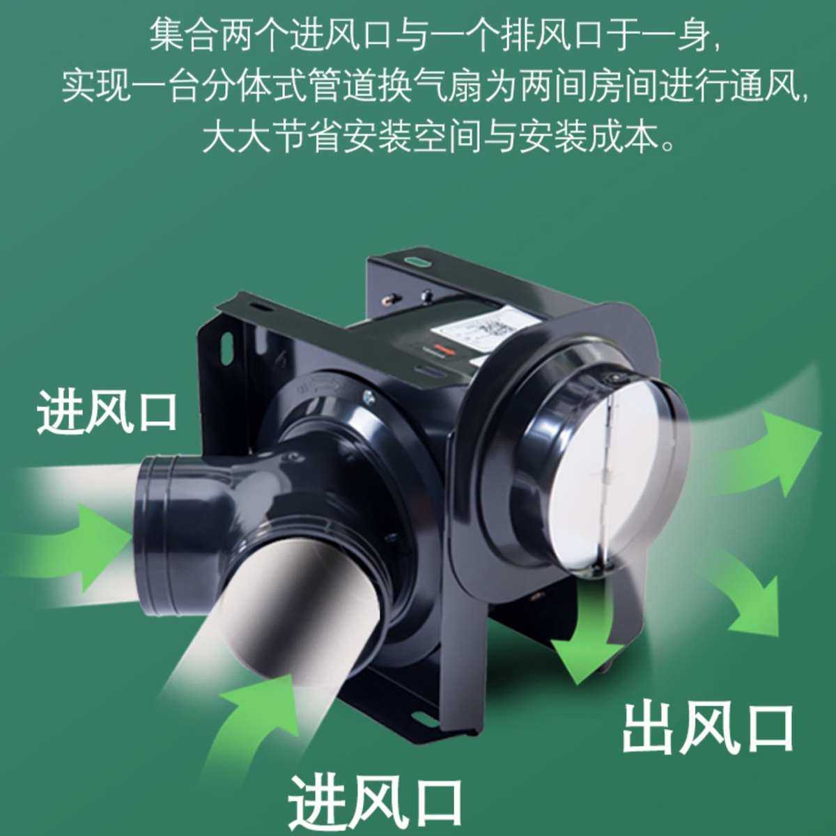 绿岛风排气扇家用轻音分体管道风机酒店一拖二换气扇卫生间抽风机
