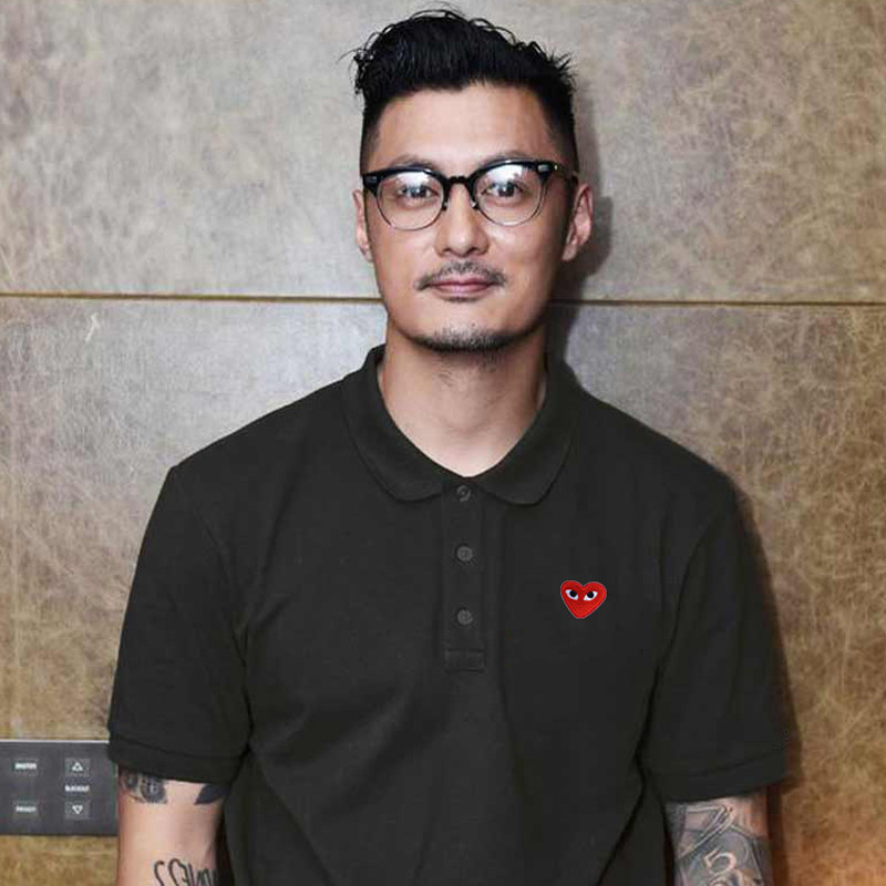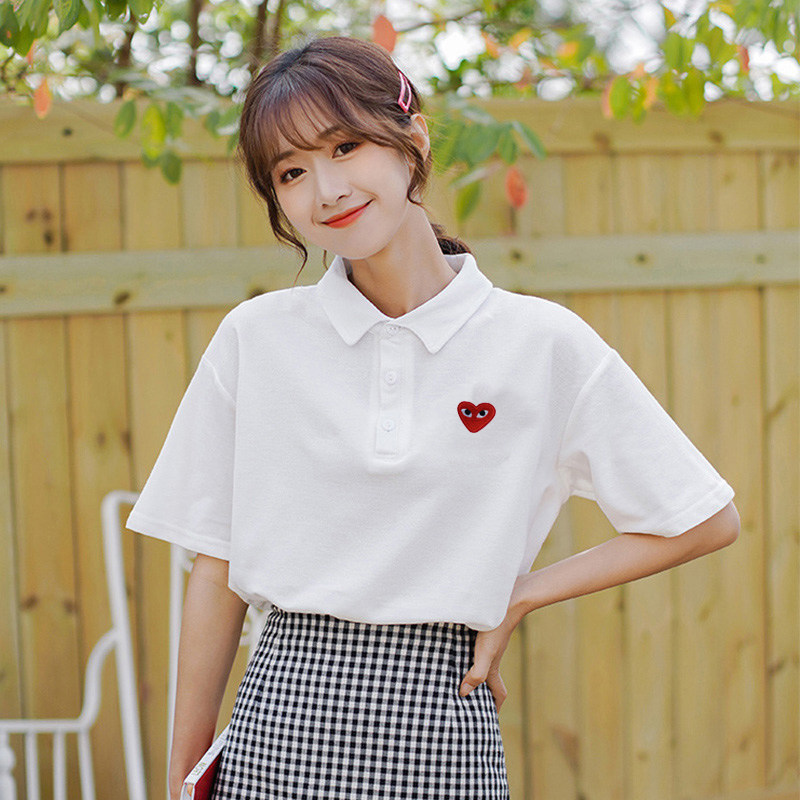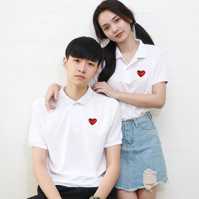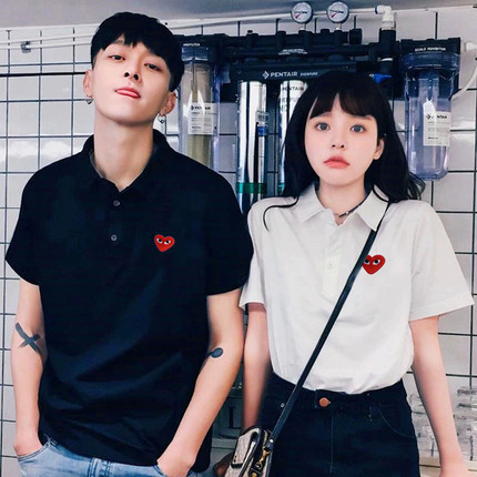 日系余文乐同款刺绣爱心POLO衫情侣潮牌男女纯棉结婚登记定制短袖