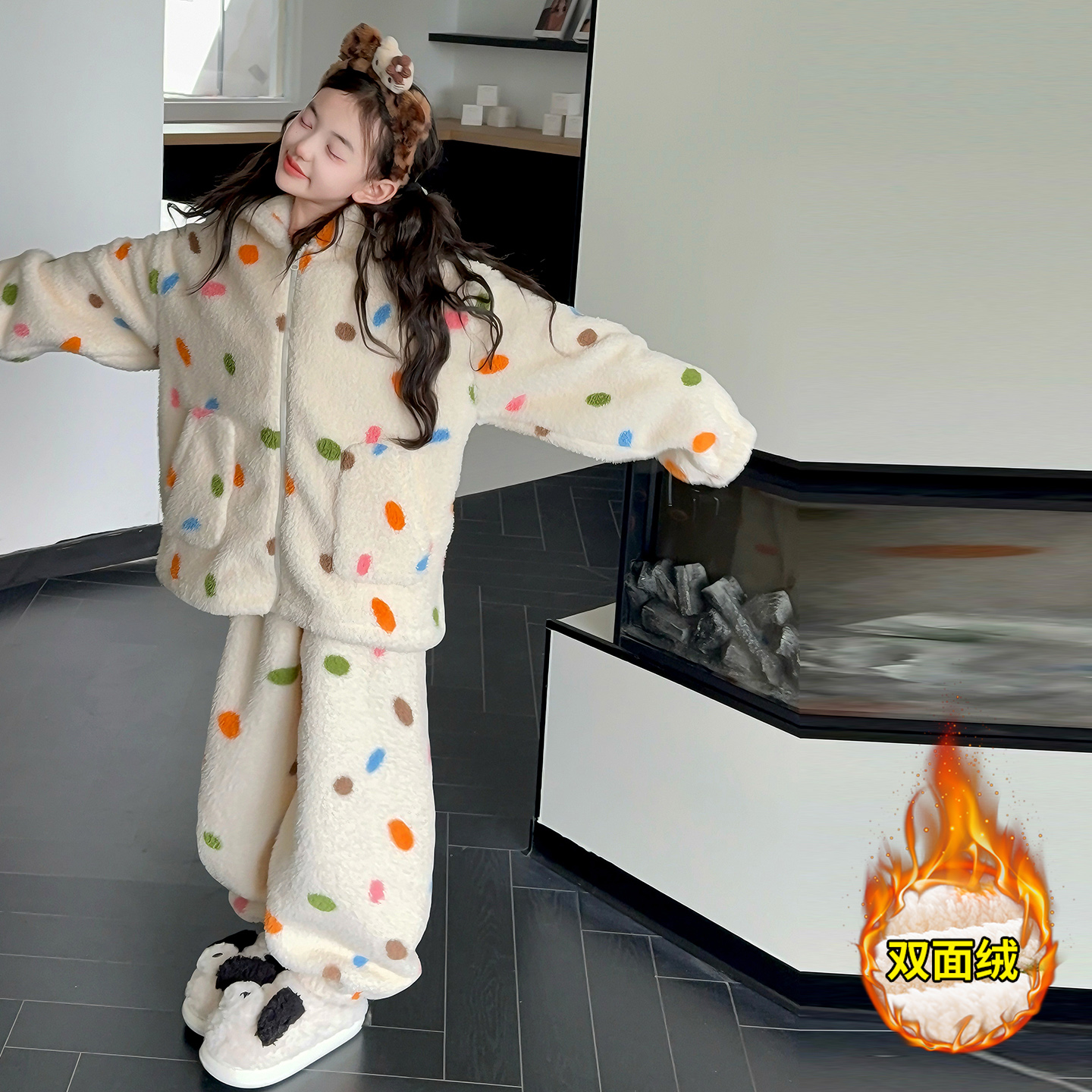 女童秋冬装2025新款加厚珊瑚绒