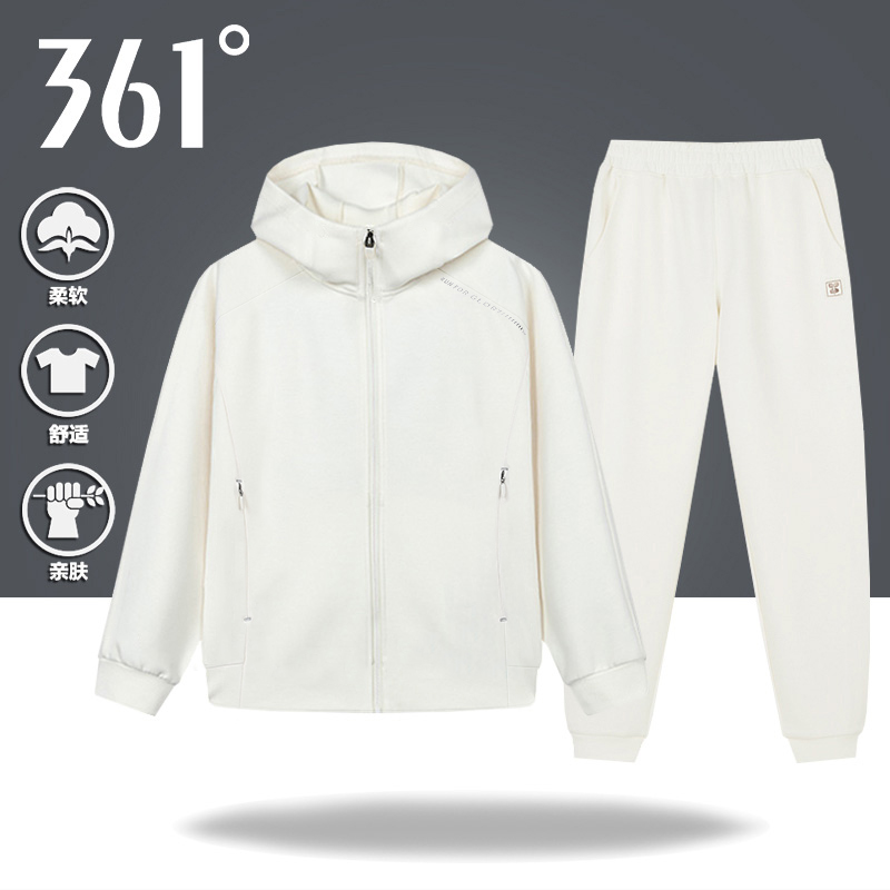 361白色跑步运动服女套装2025春秋季新款连帽开衫卫衣针织两件套