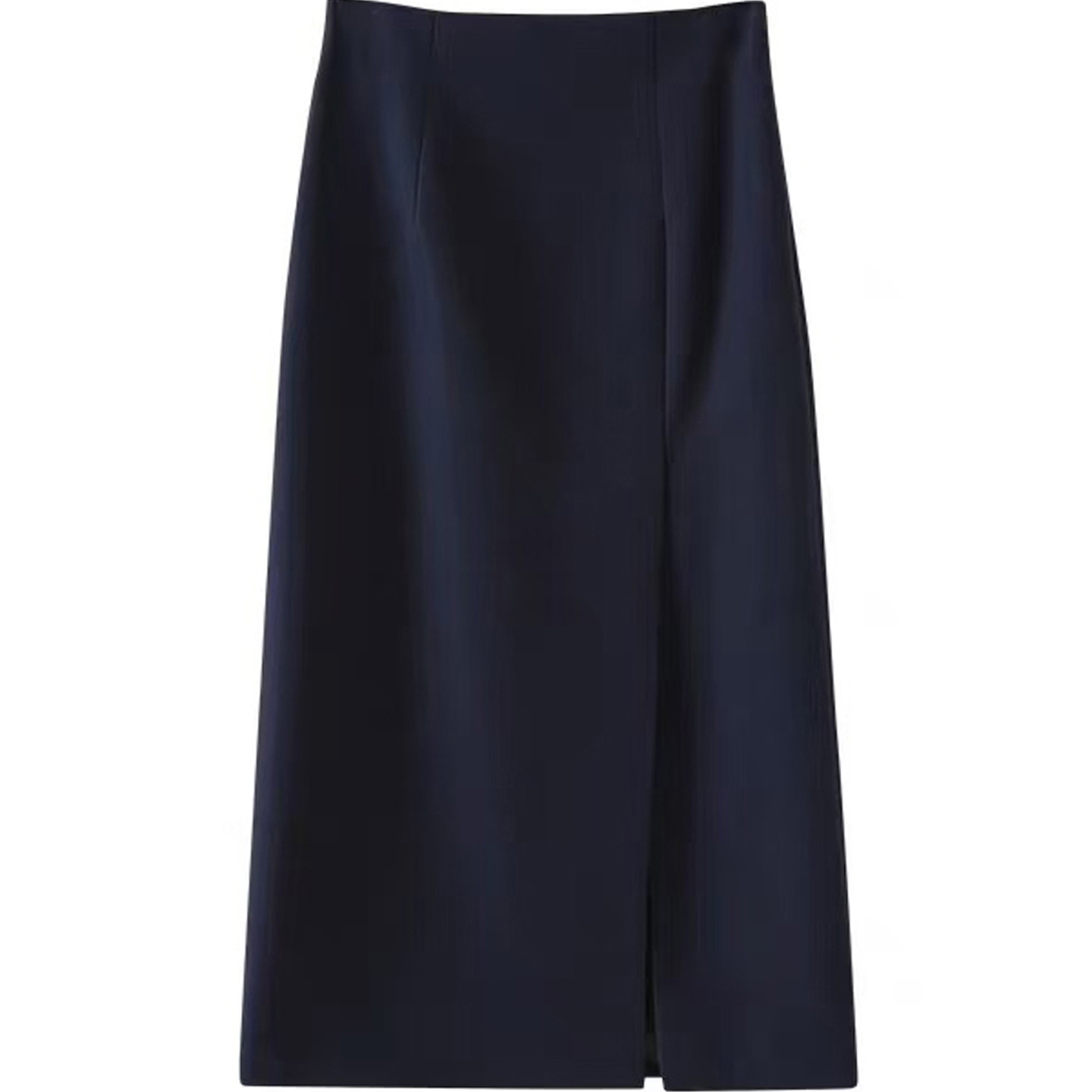 欧洲站秋高腰显瘦侧开叉中长裙小个子百搭纯色西装料A字半身裙女