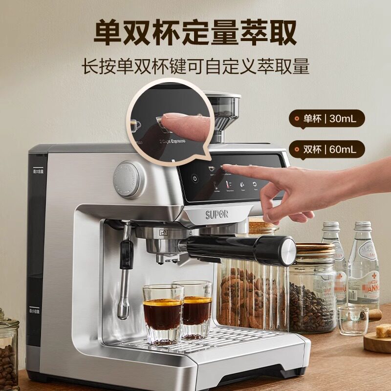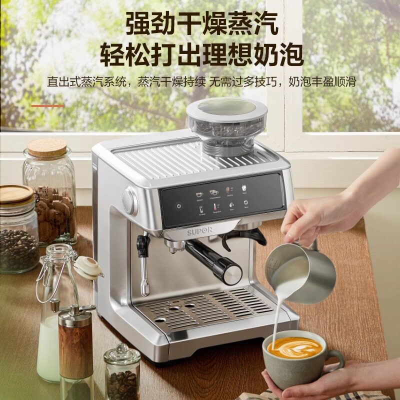 苏泊尔半自动咖啡机意式浓缩家用办公室小型奶泡研磨一体现磨咖啡