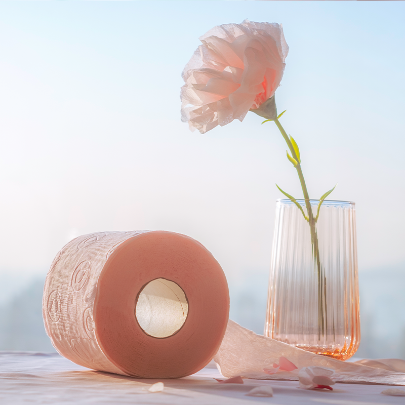 Renova樱花粉色手纸玫瑰香味 彩色有芯卷纸卫生间卷筒纸4卷卫生纸