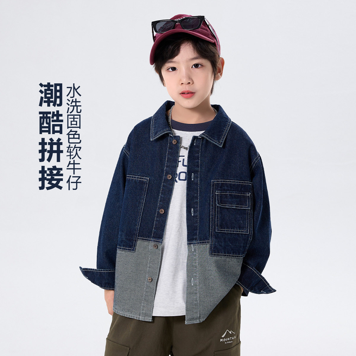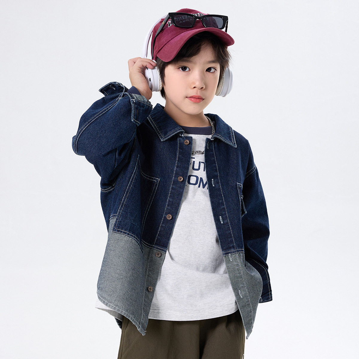 男童秋装牛仔外套2025新款中大童儿童春秋单排扣翻领夹克开衫