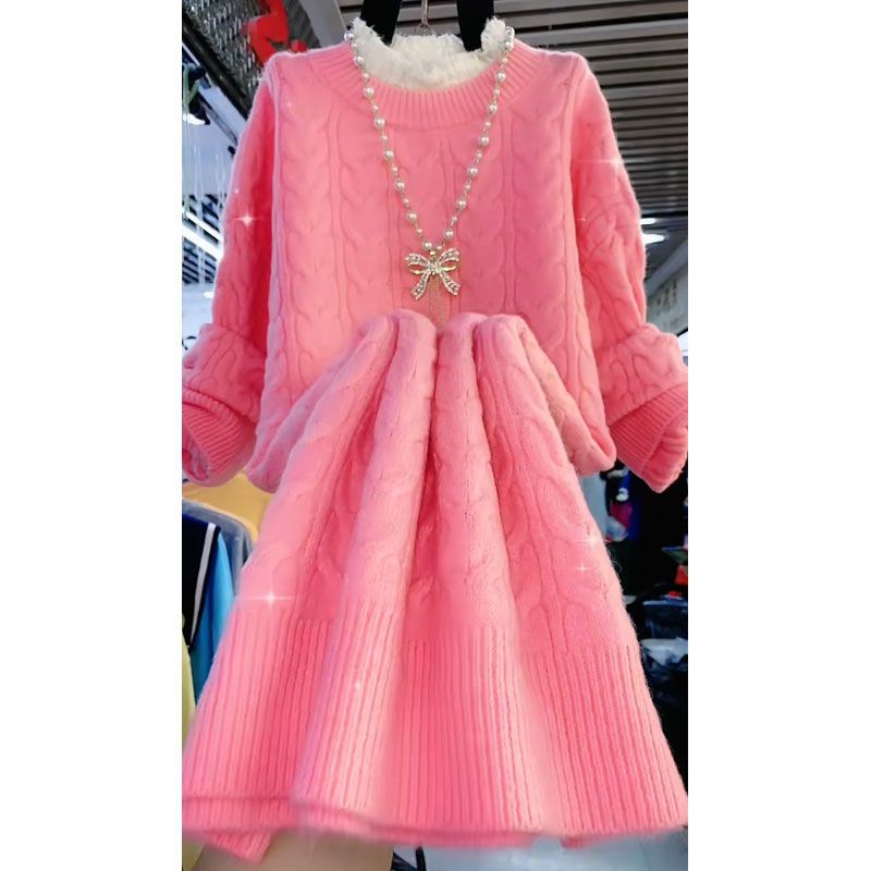 欧货时尚爆款毛衣裙女网红秋季新款小个子显瘦遮肚百搭针织连衣裙