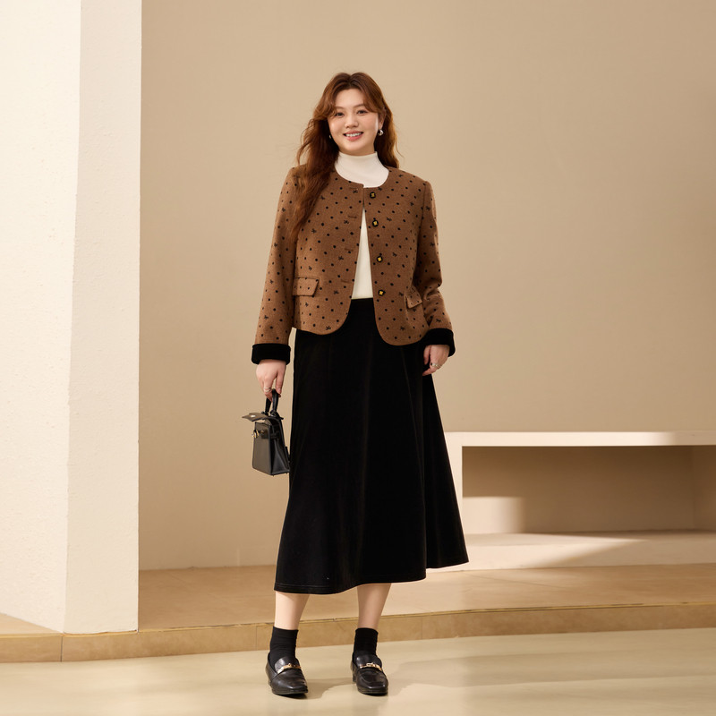 【轻熟风丝绒裙】纤莉秀大码女装法式优雅半身裙胖mm2025冬装新款