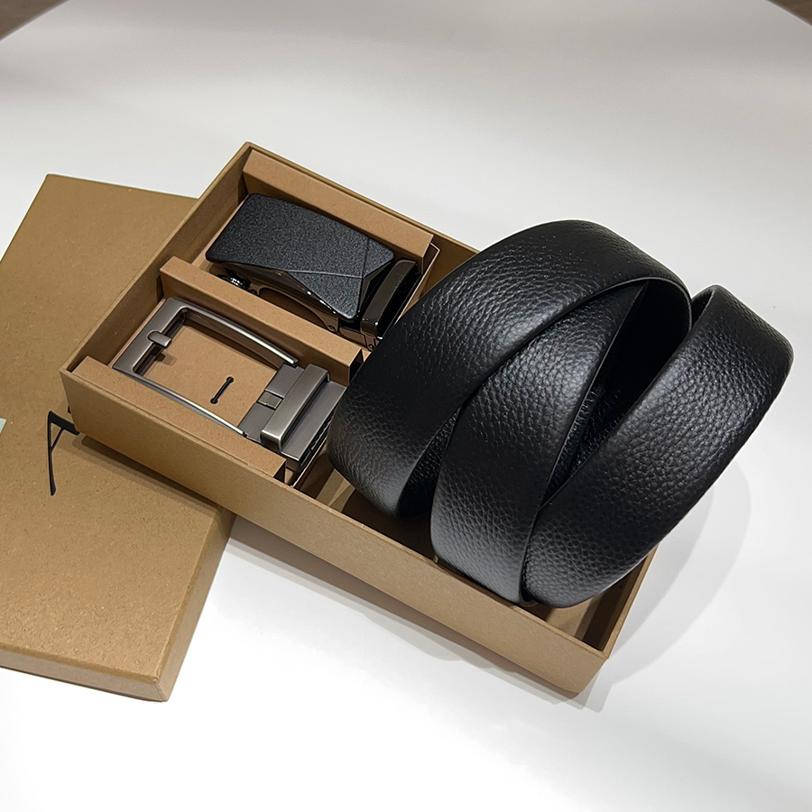头层牛皮双扣头腰带自动扣皮带男