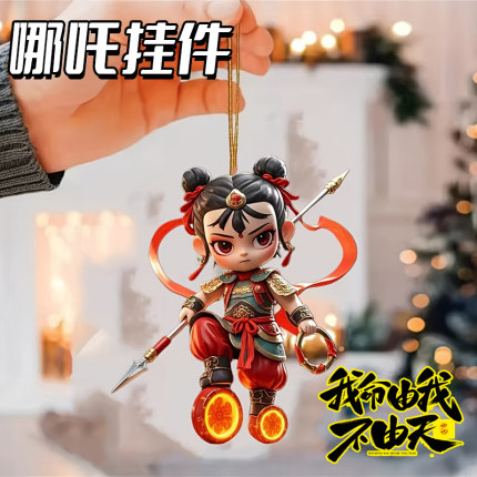 哪吒周边挂件2D平面亚克力玩偶钥匙扣可爱圣诞树动漫包包小挂饰