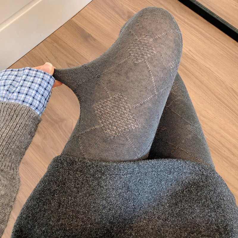 春秋款浅灰色连裤袜女菱形格烟灰色打底袜棉质咖色连脚袜jk白丝袜