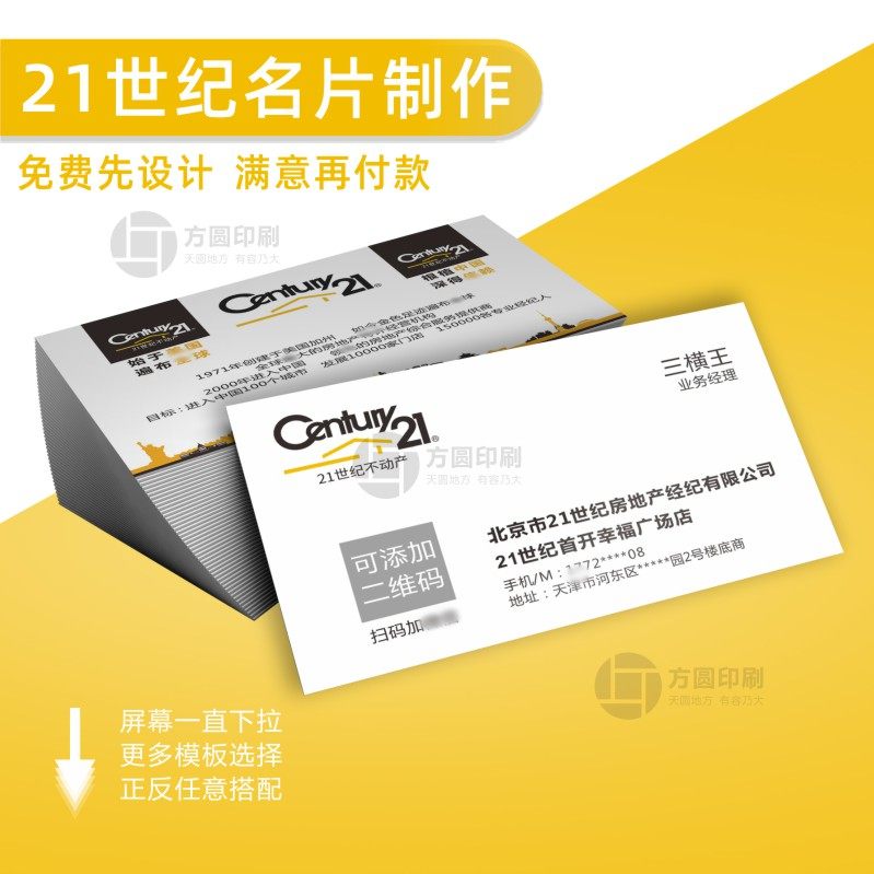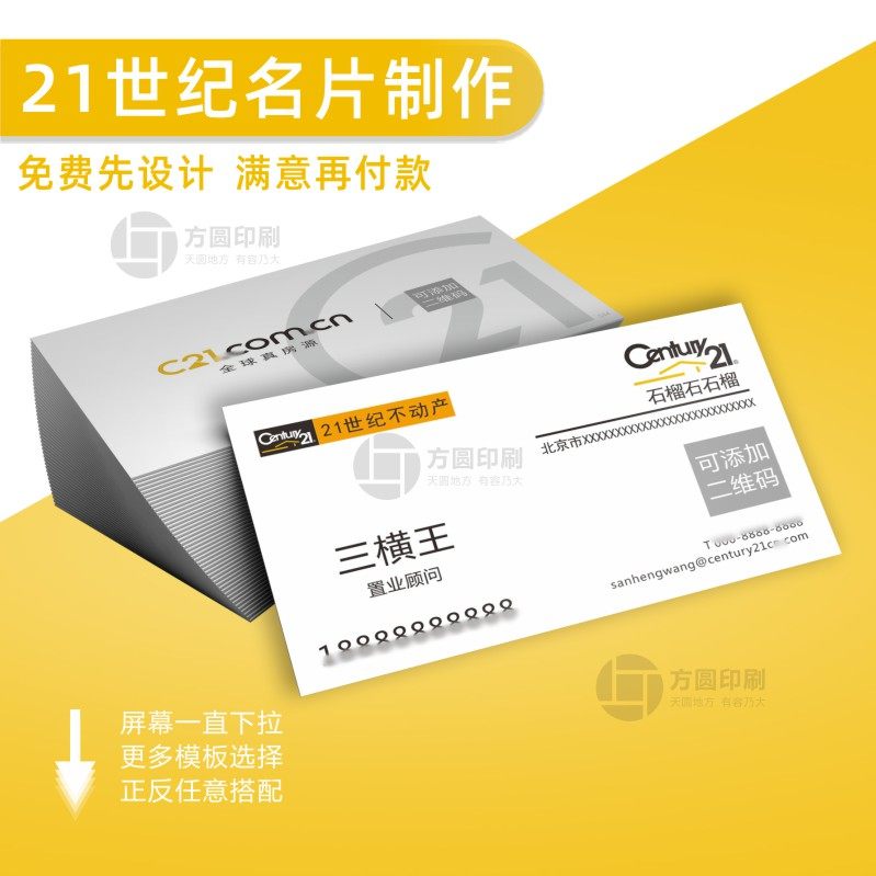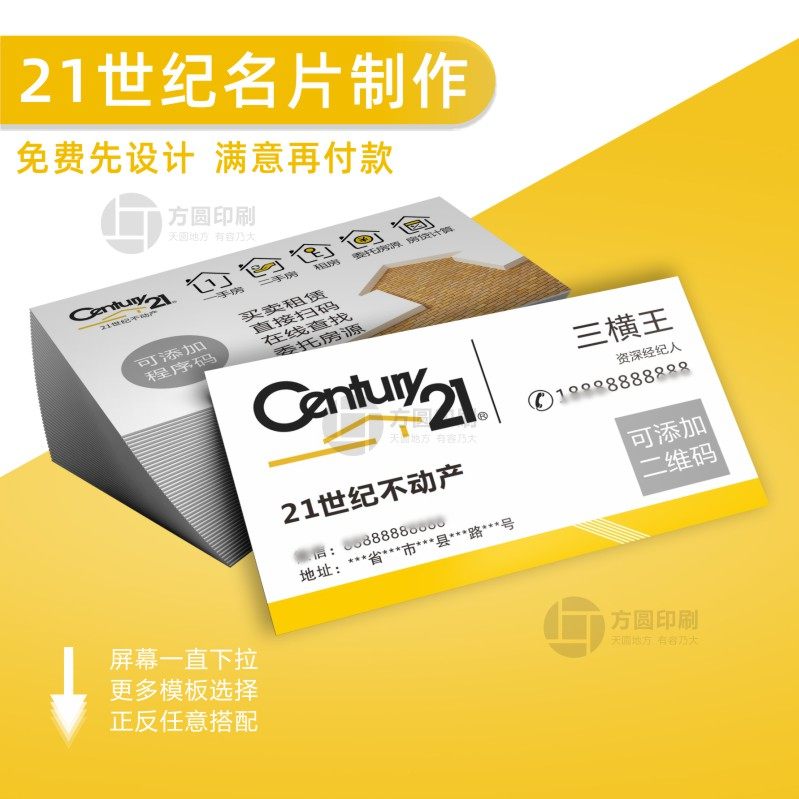 21世纪不动产名片房产经纪人中介房屋地产铜版纸圆角高端专业定制