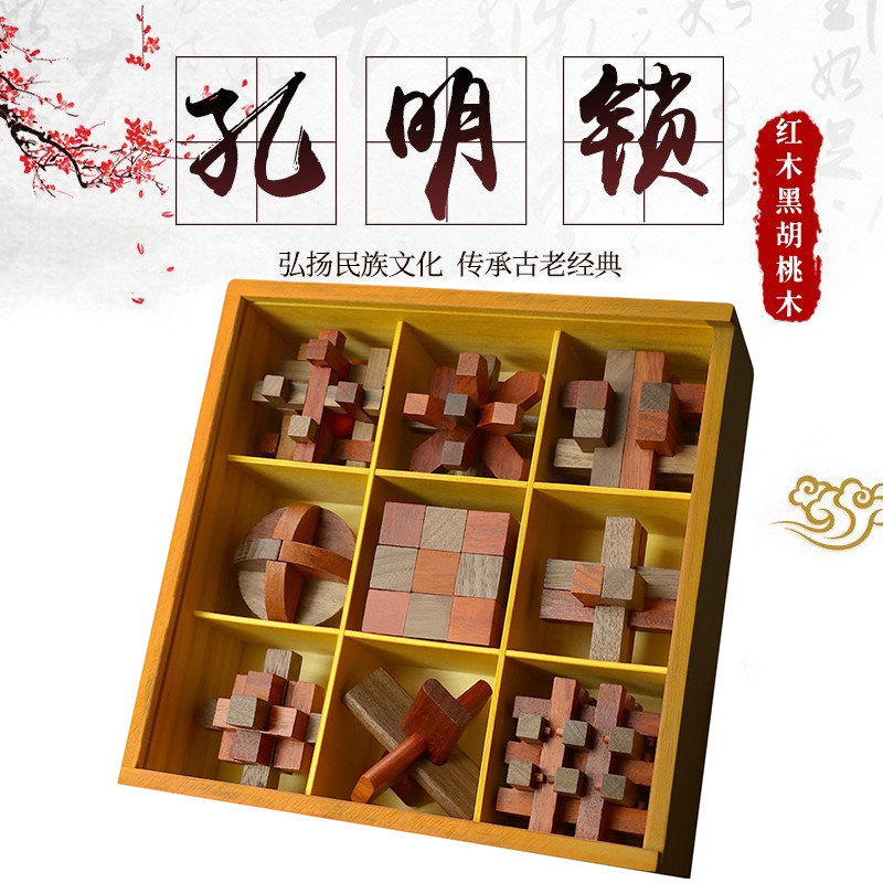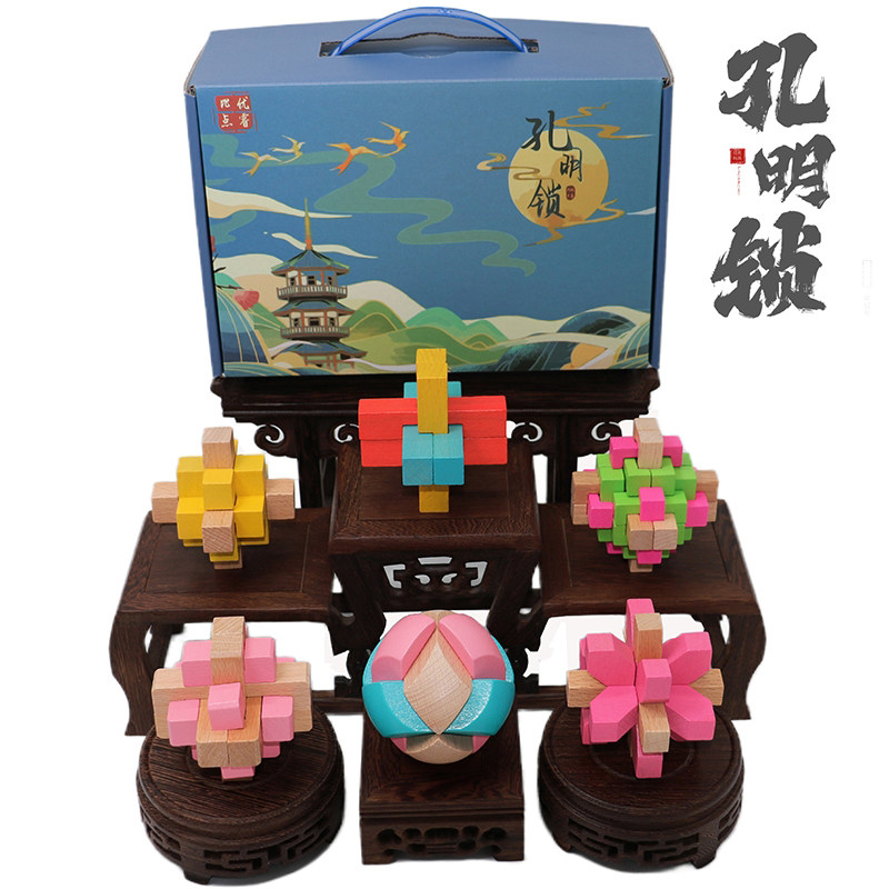 孔明锁 鲁班锁套装小学生积木九连环益智力早教玩具成人智力解锁