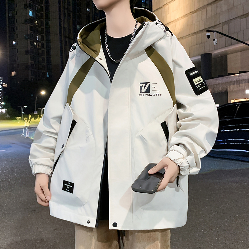 春秋季新款休闲帅气夹克外套男装青少年学生连帽风衣潮流宽松褂子