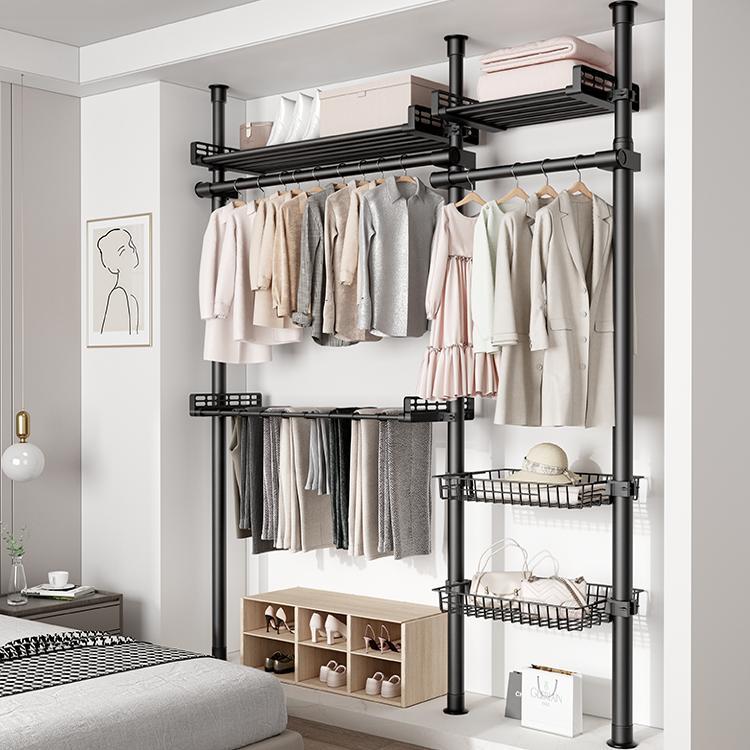 房间开放式衣柜小型落地架子组装顶天立地金属置衣架衣帽间置物架