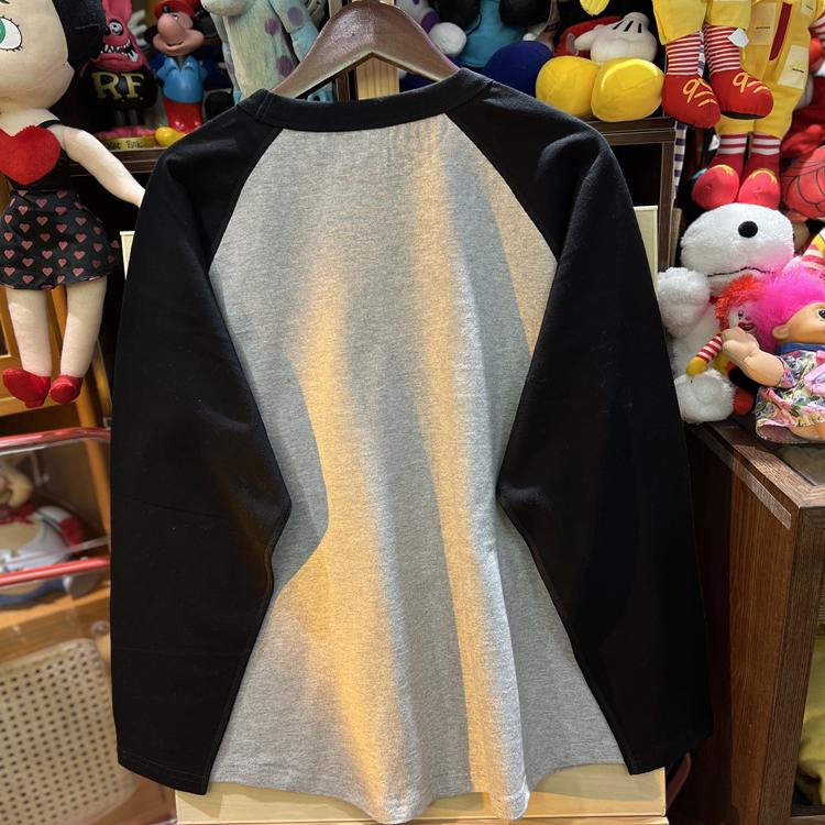 美式复古vintage 经典snoopy史努比 插肩黑白拼色重磅纯棉长袖T恤