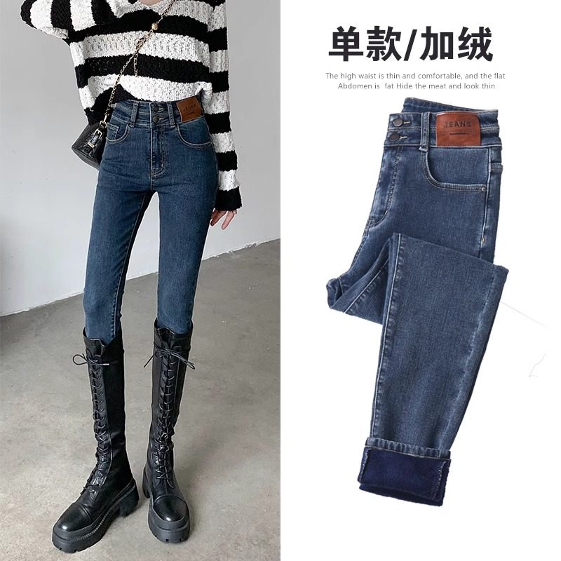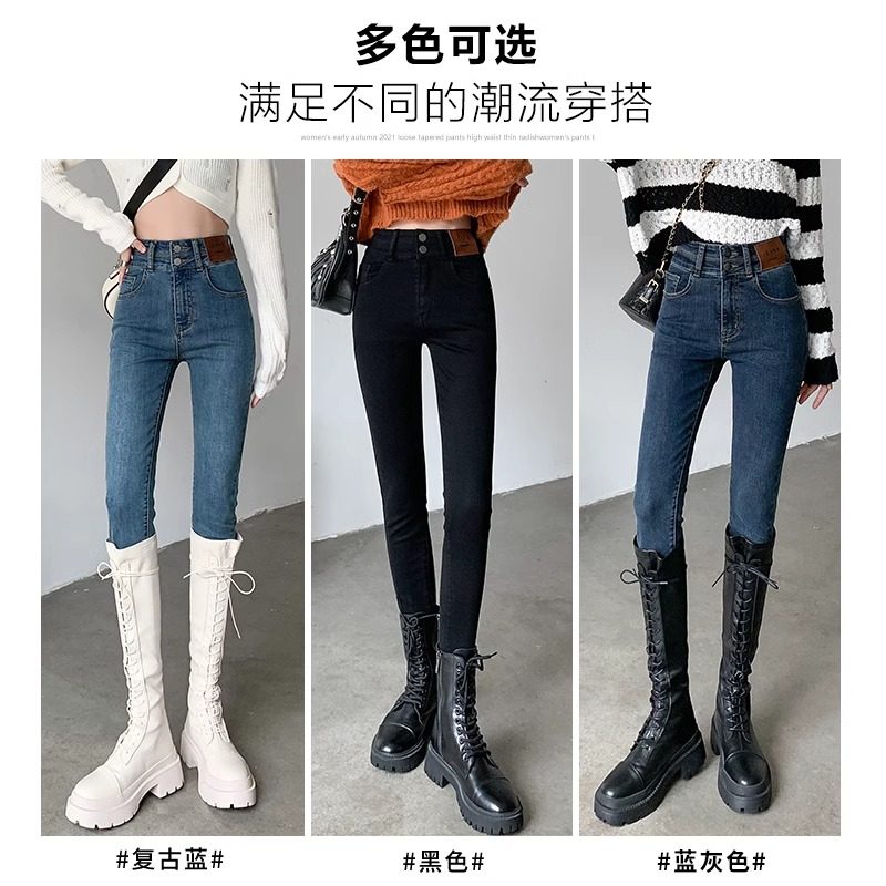 加绒小脚牛仔裤女秋冬显瘦2024年新款高腰弹力紧身百搭铅笔长裤子