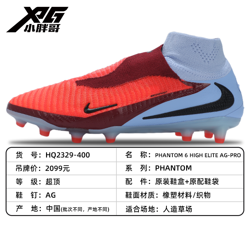 小胖哥XPG耐克PHANTOM 6暗煞GX3超顶AG-PRO人草短钉高帮足球鞋男