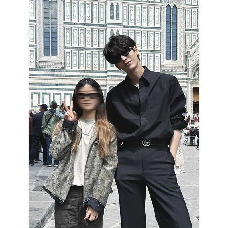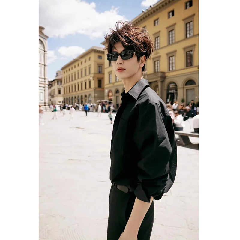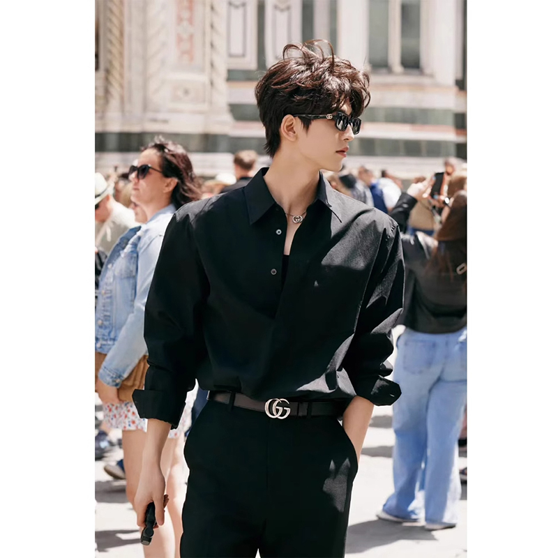张凌赫同款黑色冰丝衬衫男款禁欲