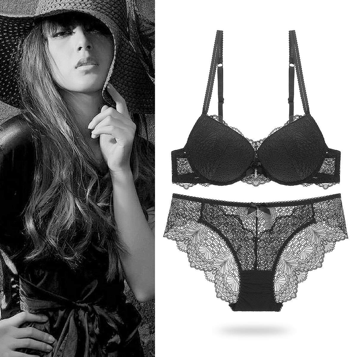 欧美新款性感文胸套装聚拢上薄下厚蕾丝收副乳调整型内衣女士胸罩