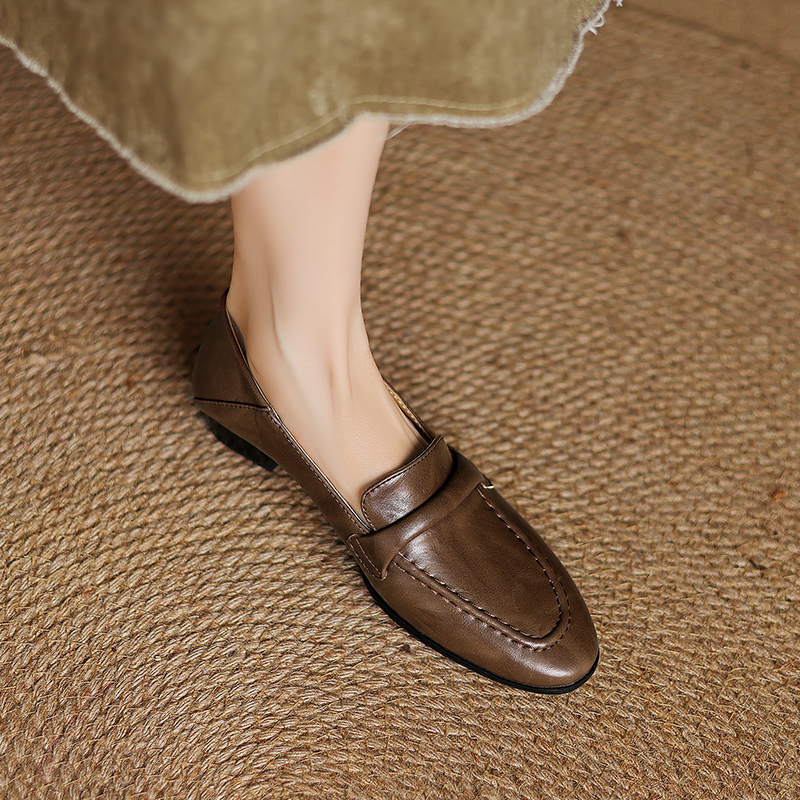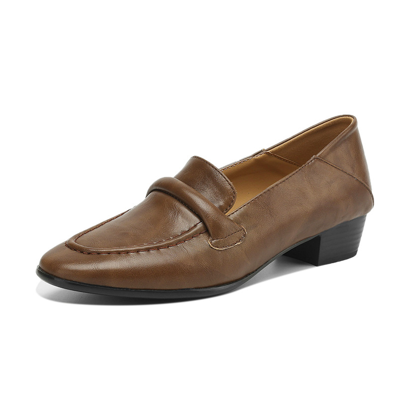 ladyblack粗中跟一脚蹬懒人职业乐福单鞋女复古大码小皮鞋子41-43