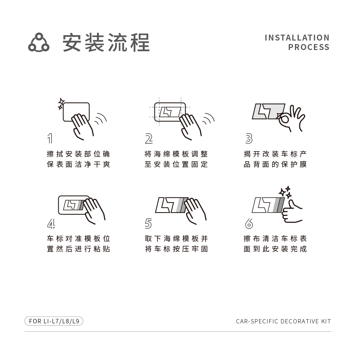 适用于理想L7L8L9改装车标尾标磨砂哑光黑化哑光银标个性装饰原创