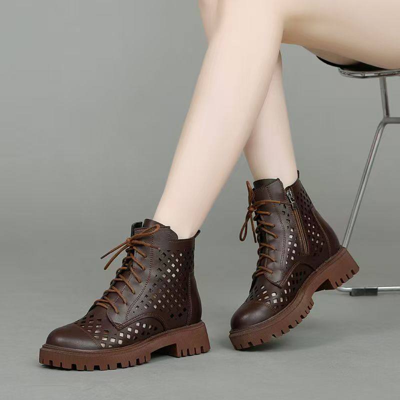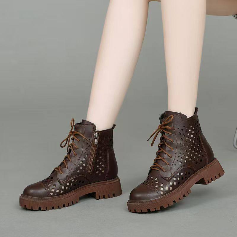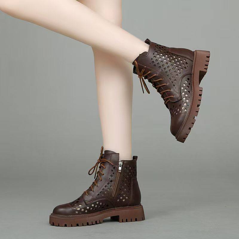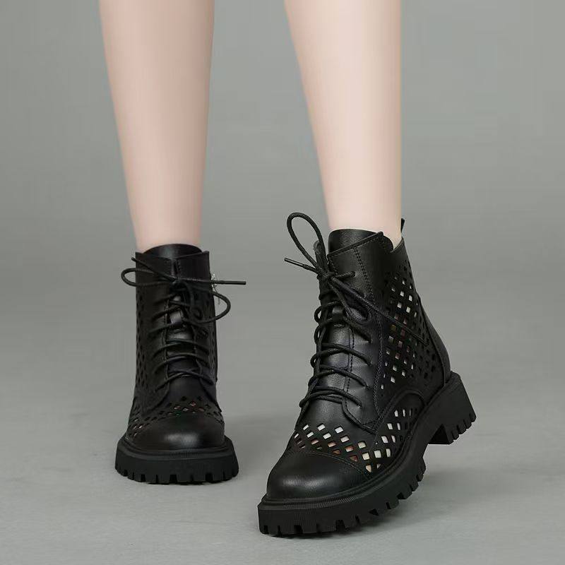 真皮镂空马丁靴透气凉靴女夏季新款软底软面女短靴薄款网靴大码41