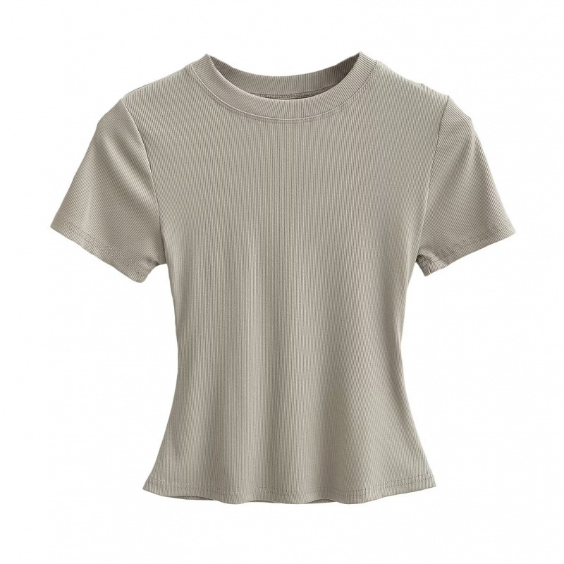 跨境外贸女装20254夏欧美风圆领短袖纯色修身T恤上衣女