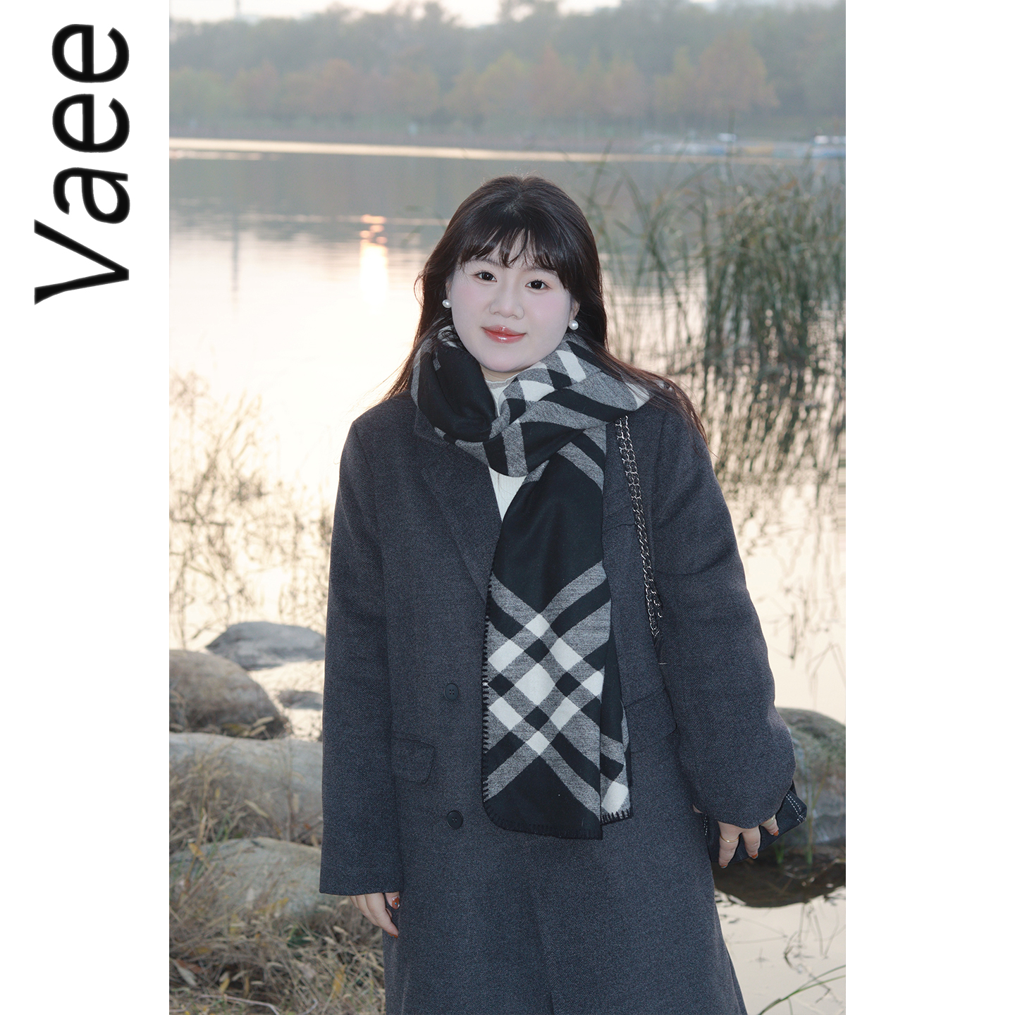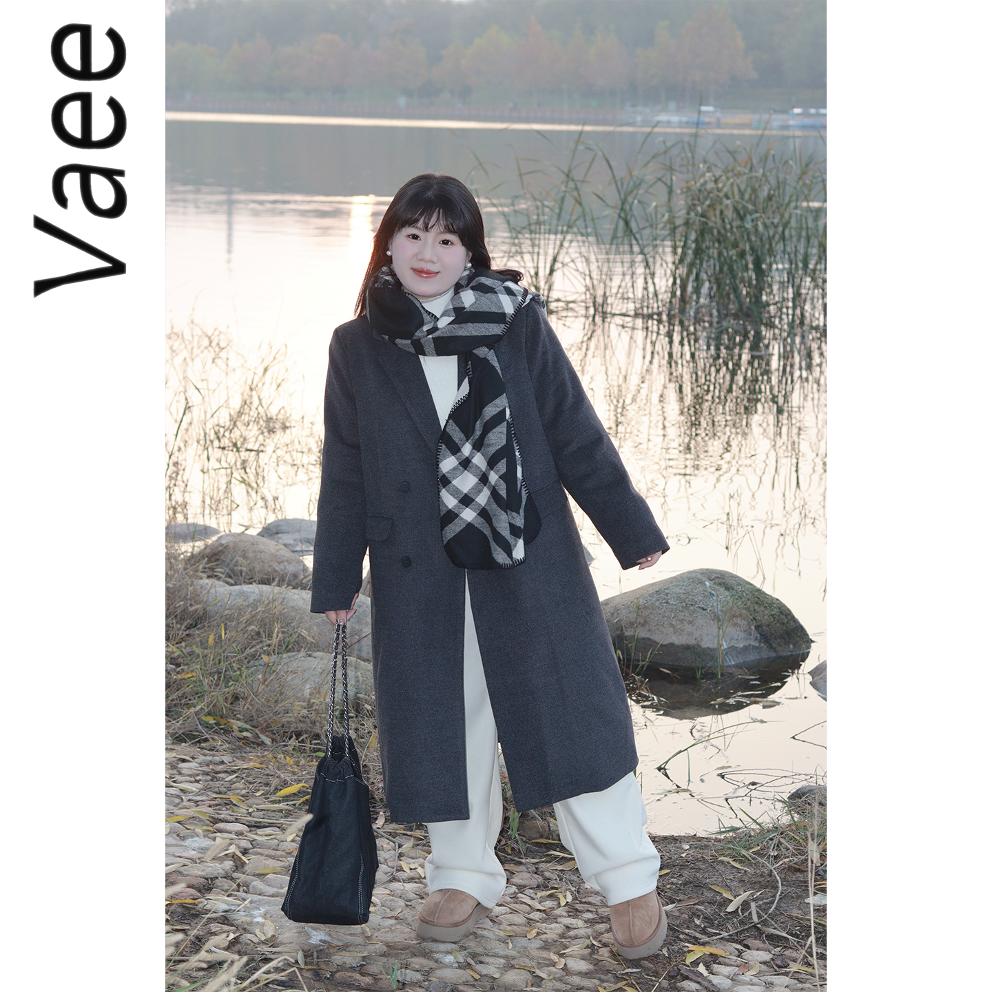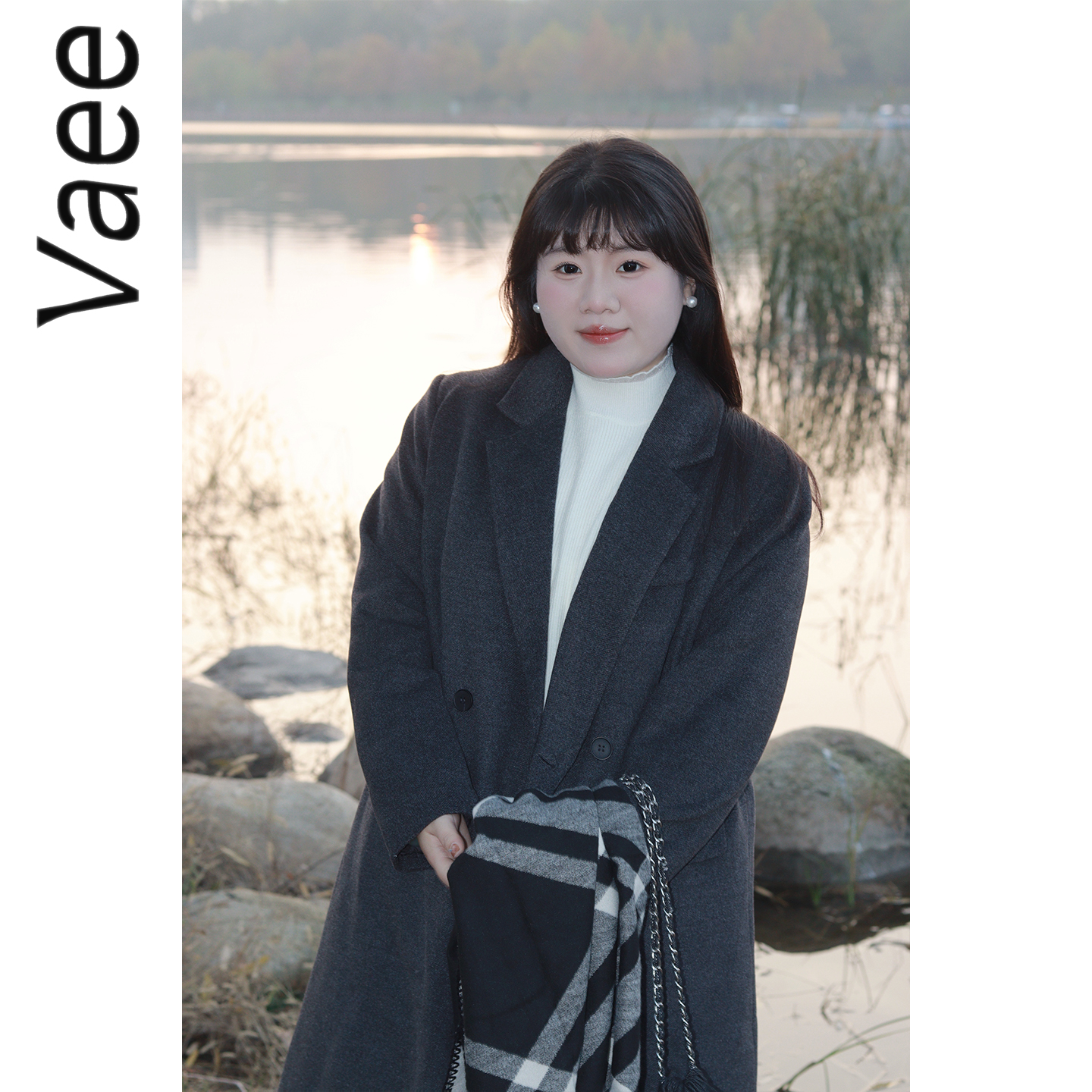 Vaee大码女装气质毛呢大衣加厚保暖90白鸭绒羽绒服冬季长款外套