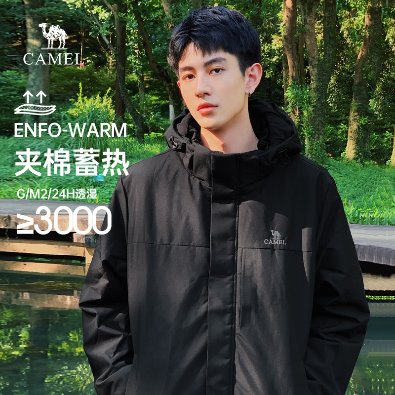 骆驼棉服男装夹克外套男女幻影黑2025新款连帽防寒保暖加绒厚棉衣