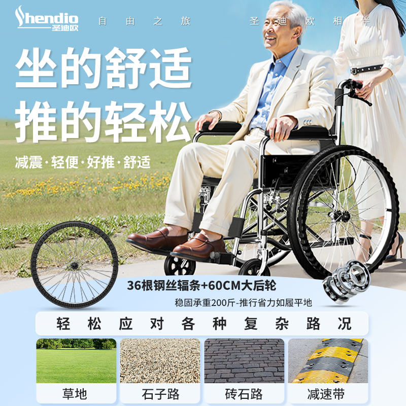 轮椅老人专用折叠轻便瘫痪年轻人骨折便携老年代步小型手推车厕所