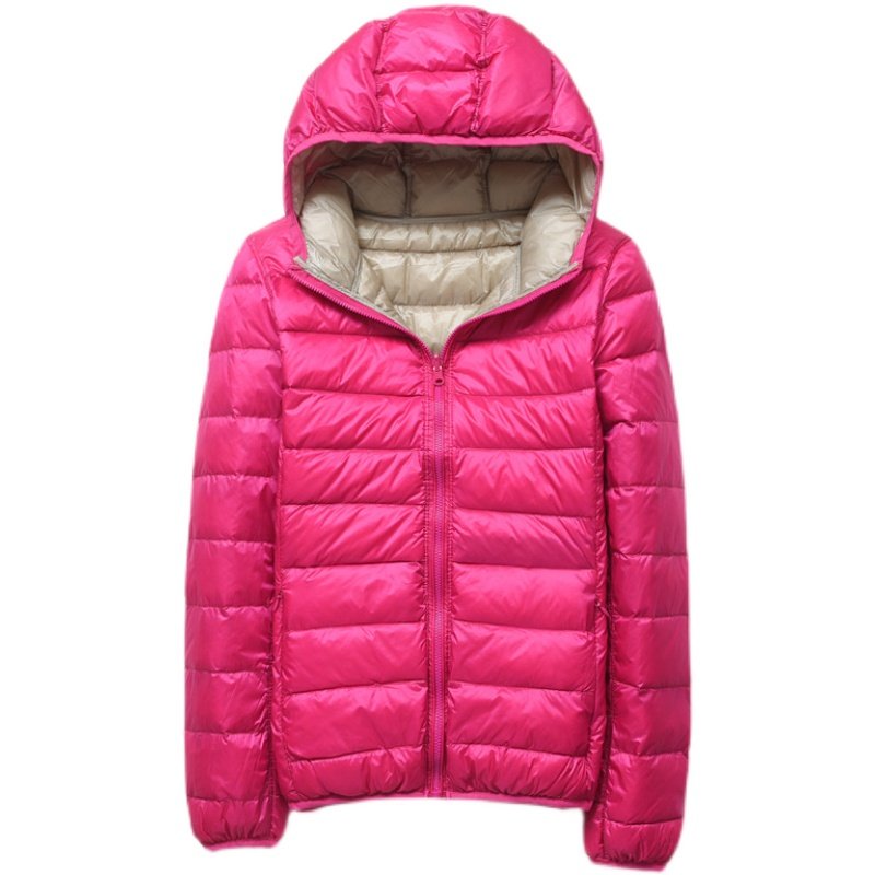 优品双面穿羽绒服女轻薄短款白鸭绒外套大码两面穿外套薄款冬保暖