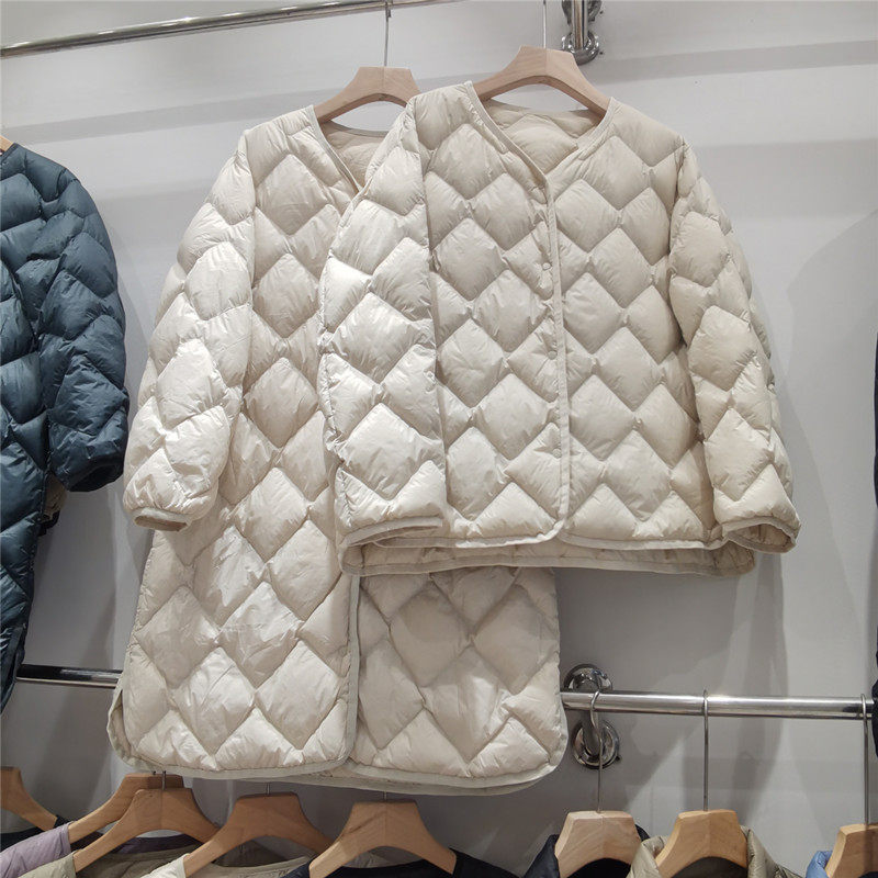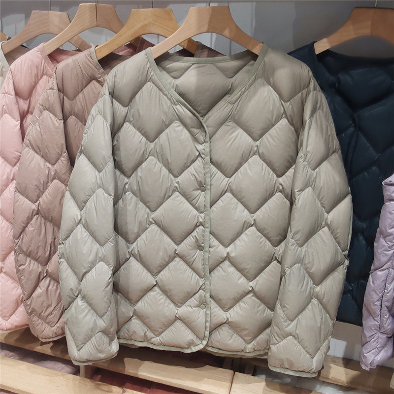 2025新款轻薄短款羽绒服女V领无领宽松大码休闲百搭中长款白鸭绒