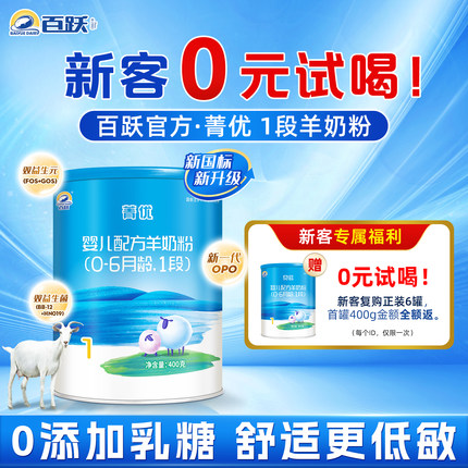【百跃官方】菁优0添加乳糖低敏配方婴幼儿1段羊奶粉新国标400g