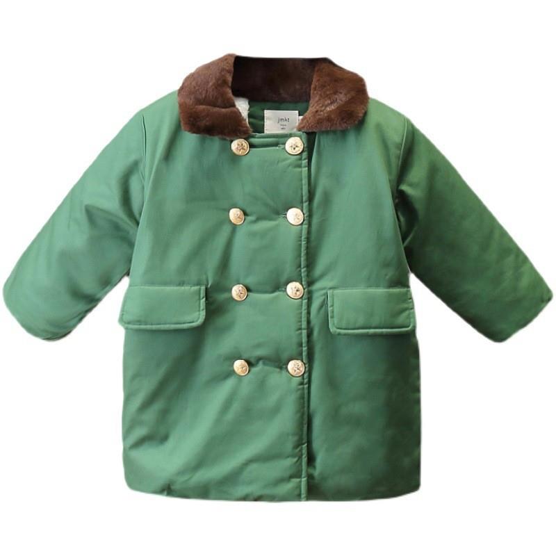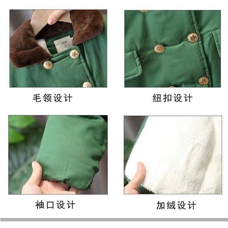 儿童军大衣男童棉服加绒加厚东北棉袄纯棉中长款小男女孩军绿棉衣