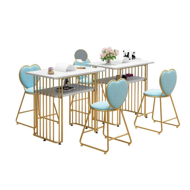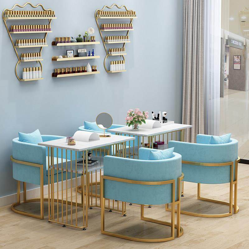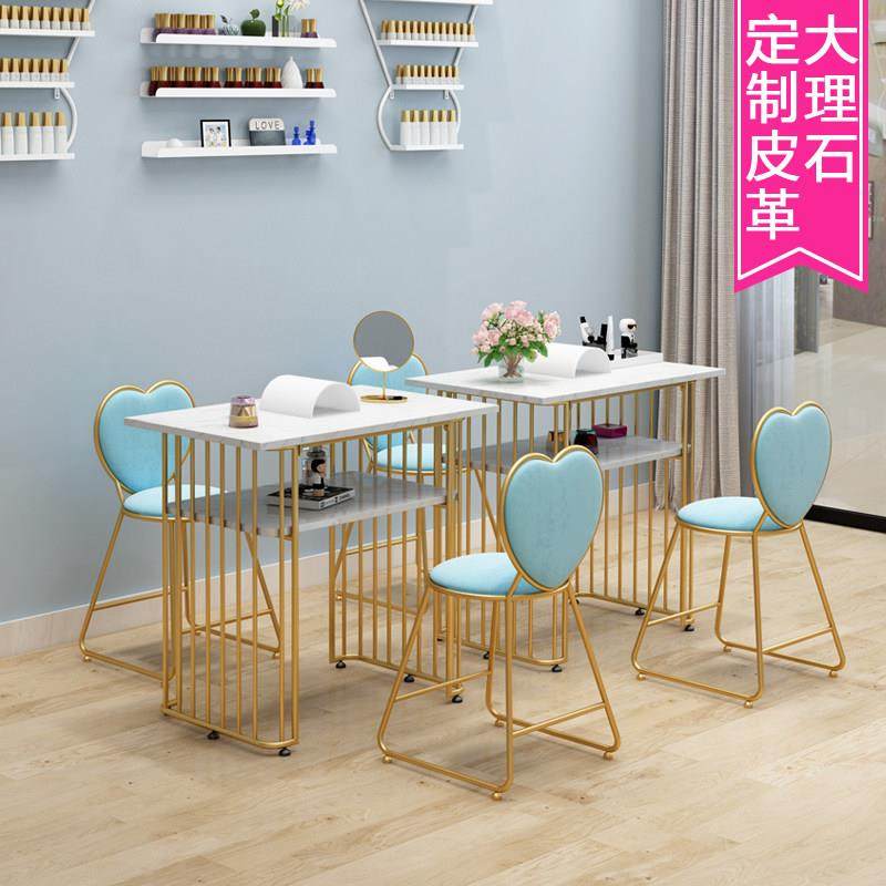 北欧网红大理石美甲桌椅套装组合简约现代金色铁艺单人双人美甲台