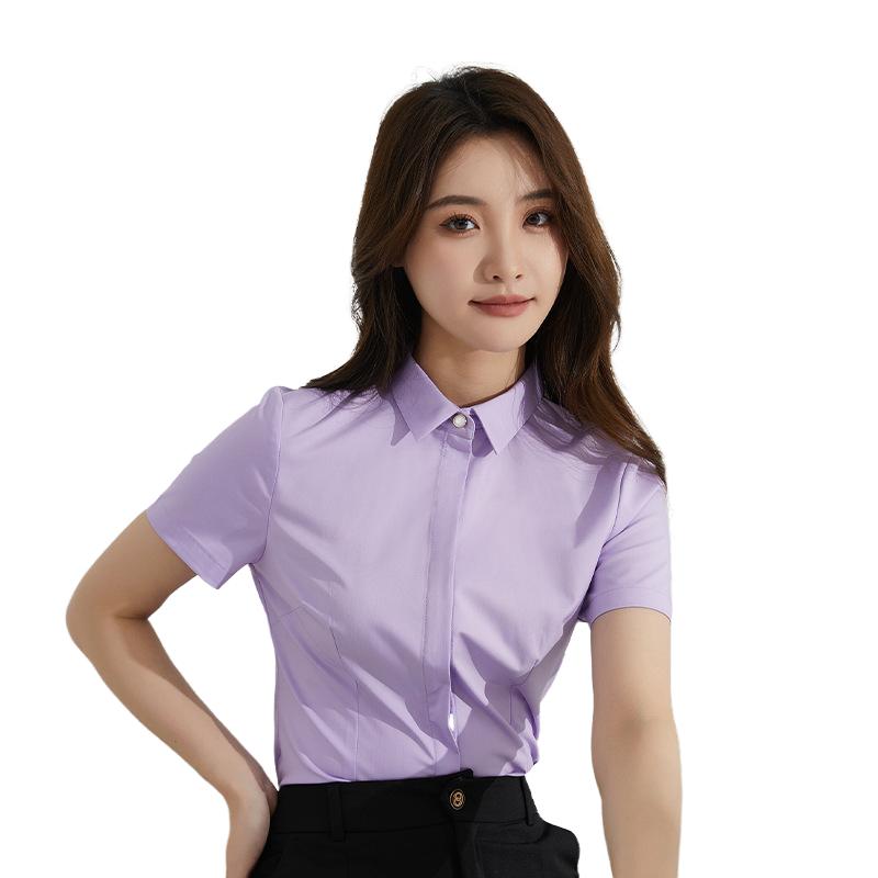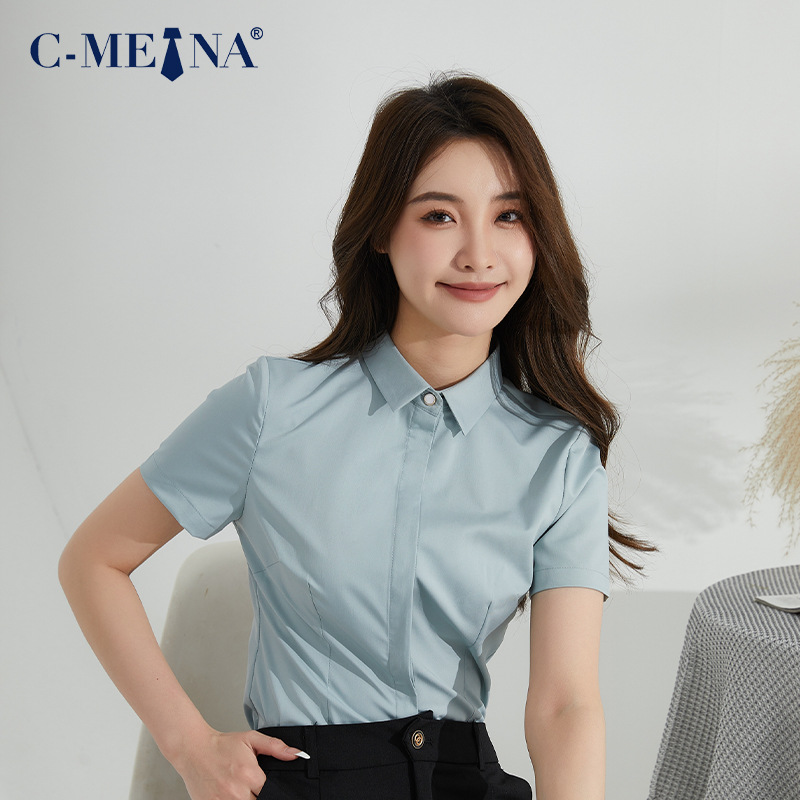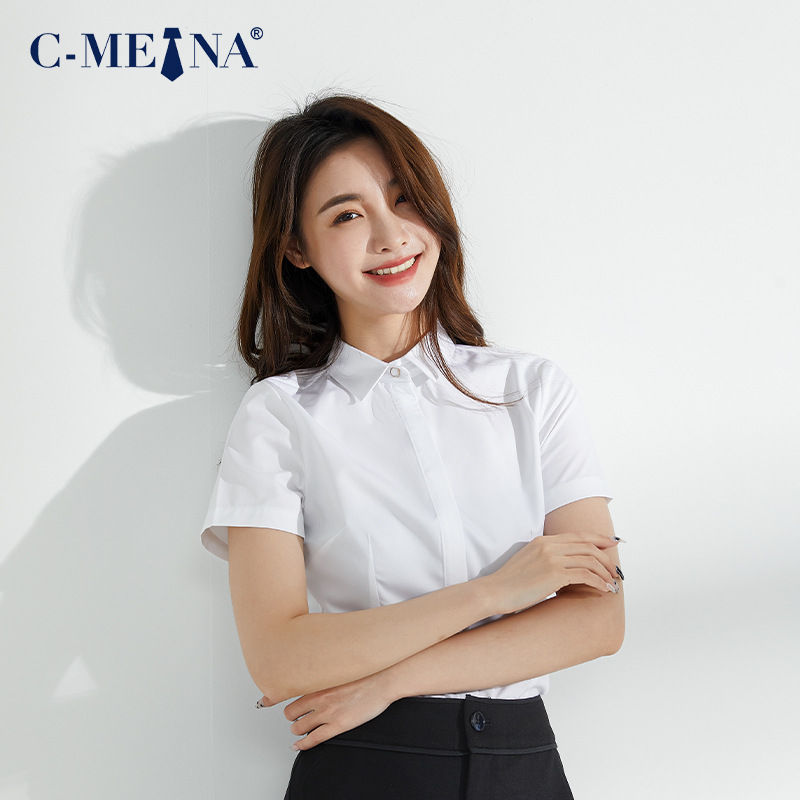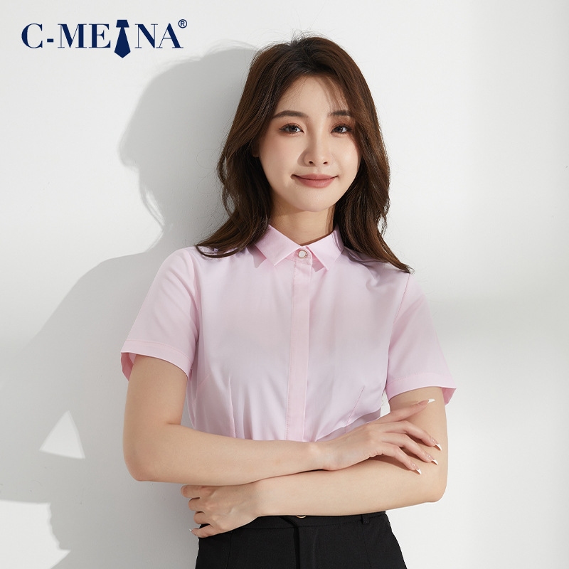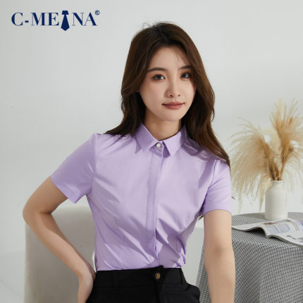 C-MENA美娜职业衬衫女式夏季短袖竹纤维修身上衣正装衬衣