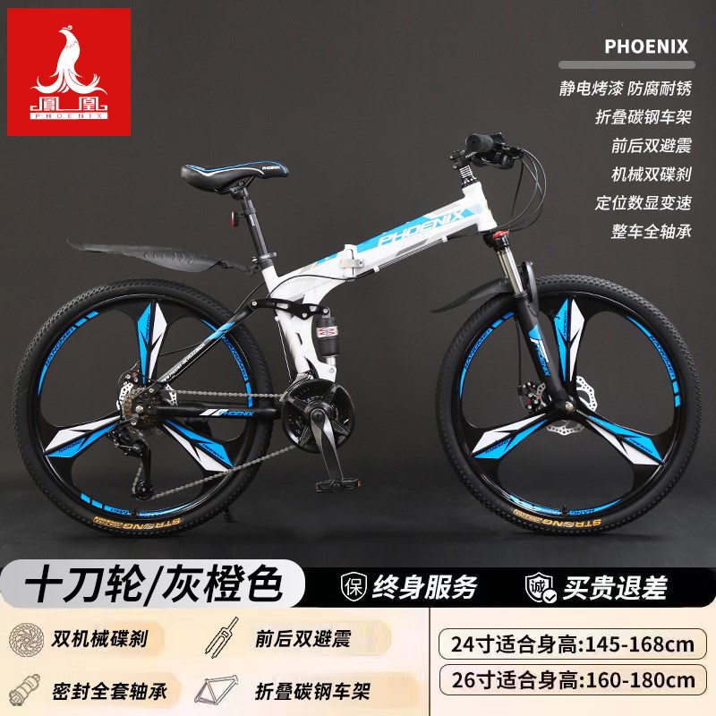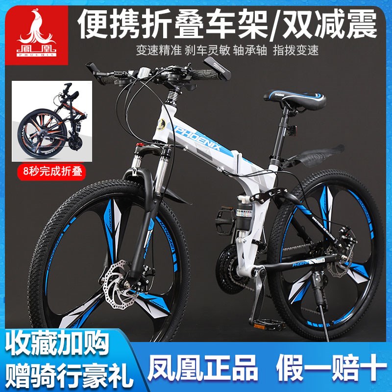 凤凰折叠山地自行车变速男款成人女款骑双减震轻便越野公路车单车