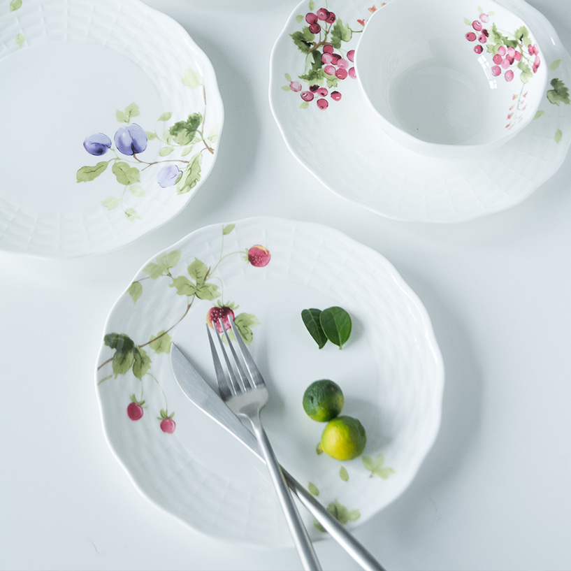 日式秋实席纹盘 田园早餐菜盘浮雕陶瓷牛排盘创意骨瓷意面平盘子