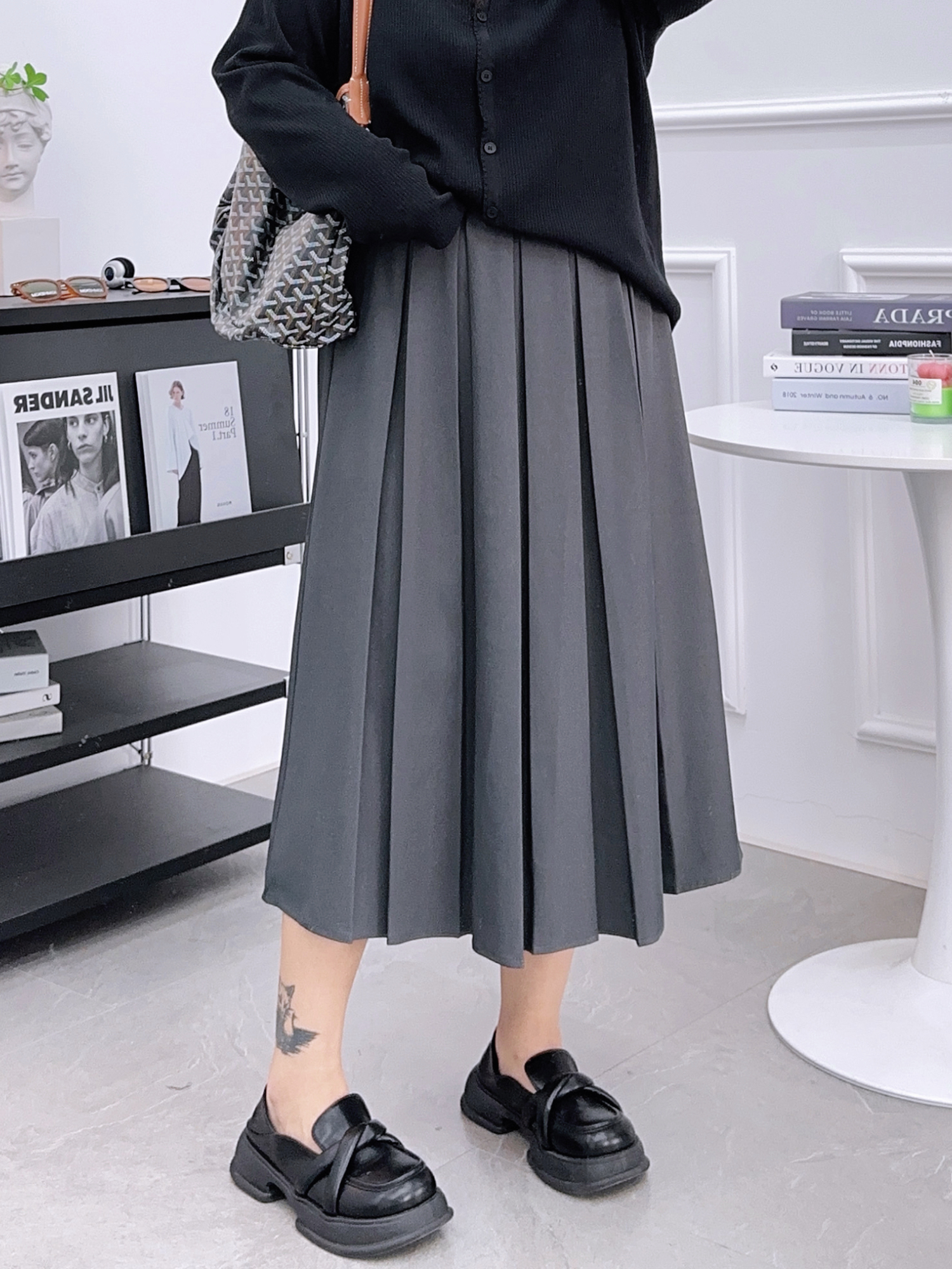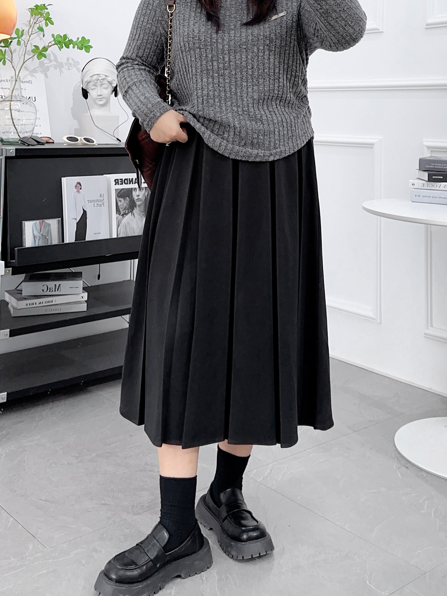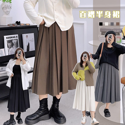宛宛家胖mm中长款毛呢半身裙女胖妹妹遮臀松紧腰学院风百褶裙伞裙