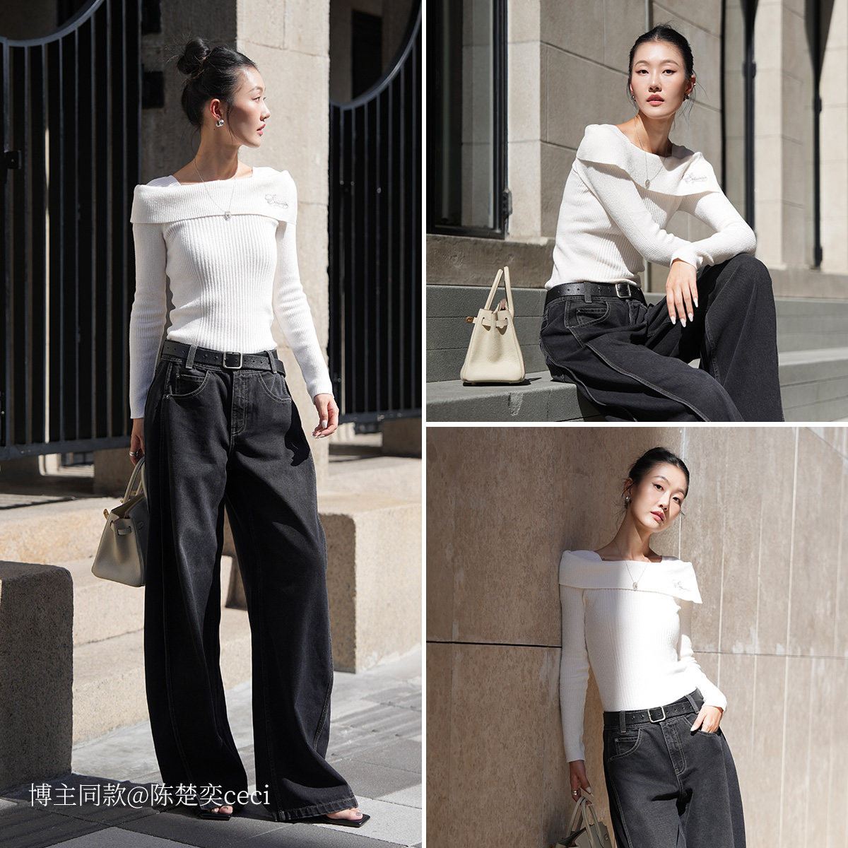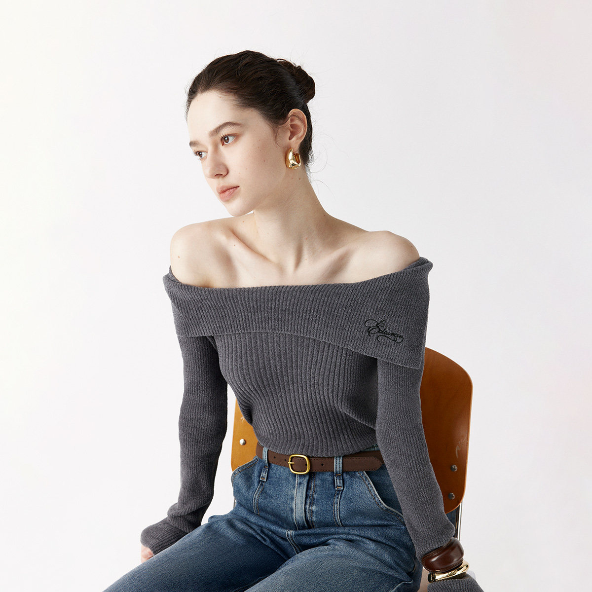 ONLY2025秋冬新款一字领纯色坑条纹设计修身长袖打底针织衫女