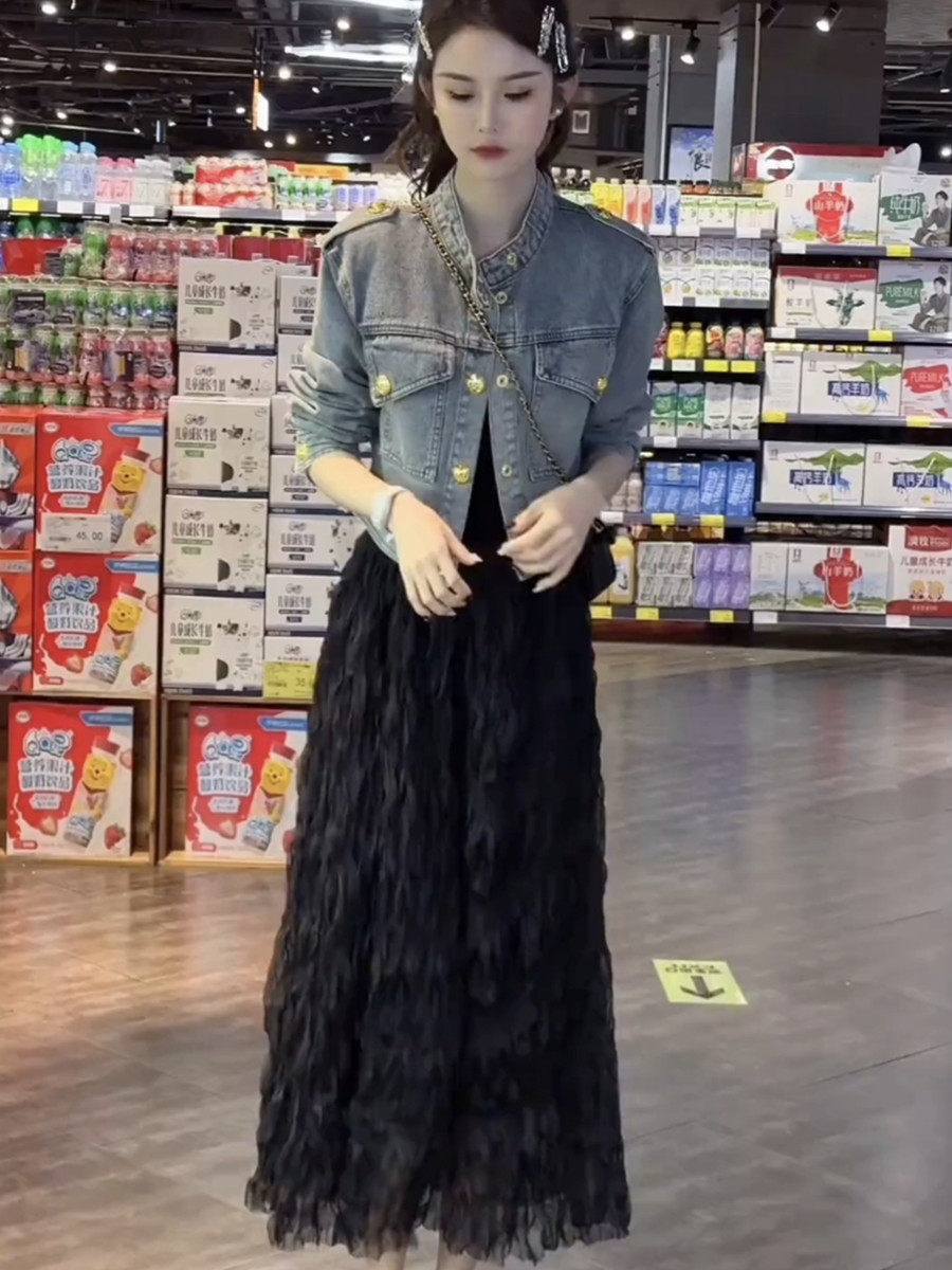 美式复古个性金扣短款牛仔外套女春秋新款后背镂空小个子百搭上衣
