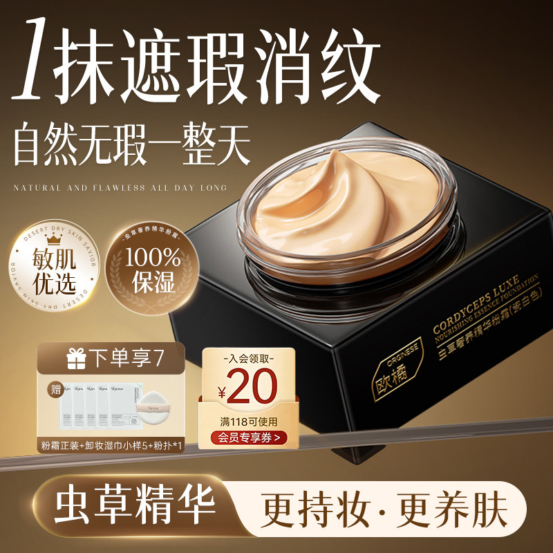 欧橘虫草粉霜养肤干皮混油皮淡纹粉底液遮瑕持久不脱妆官方旗舰店