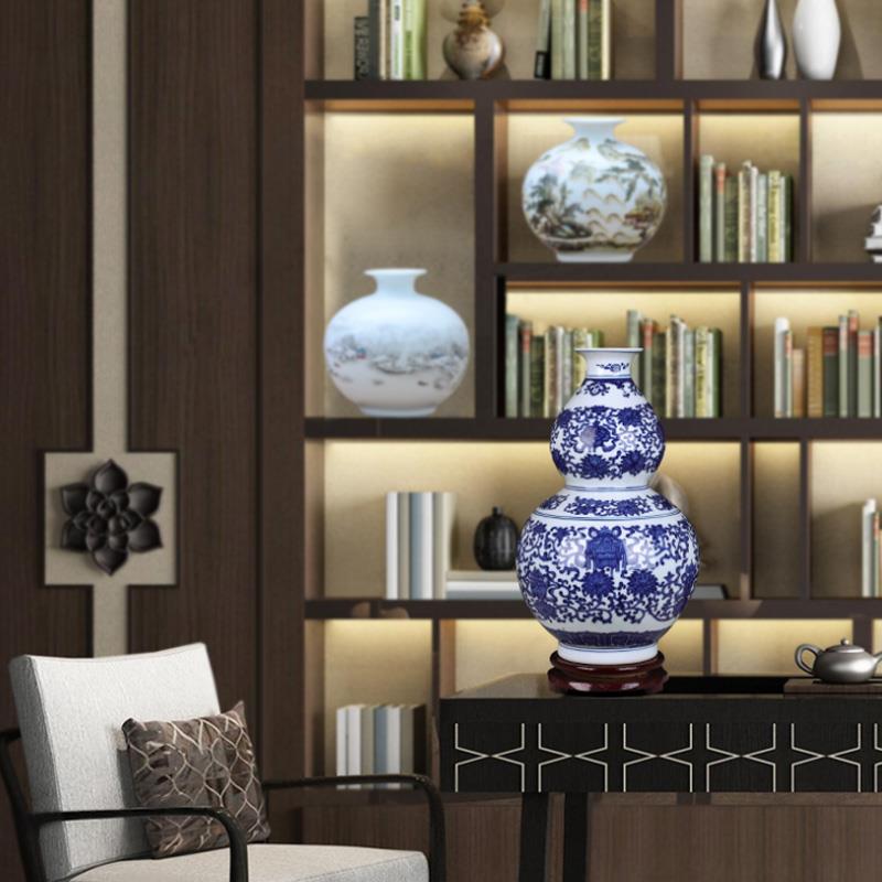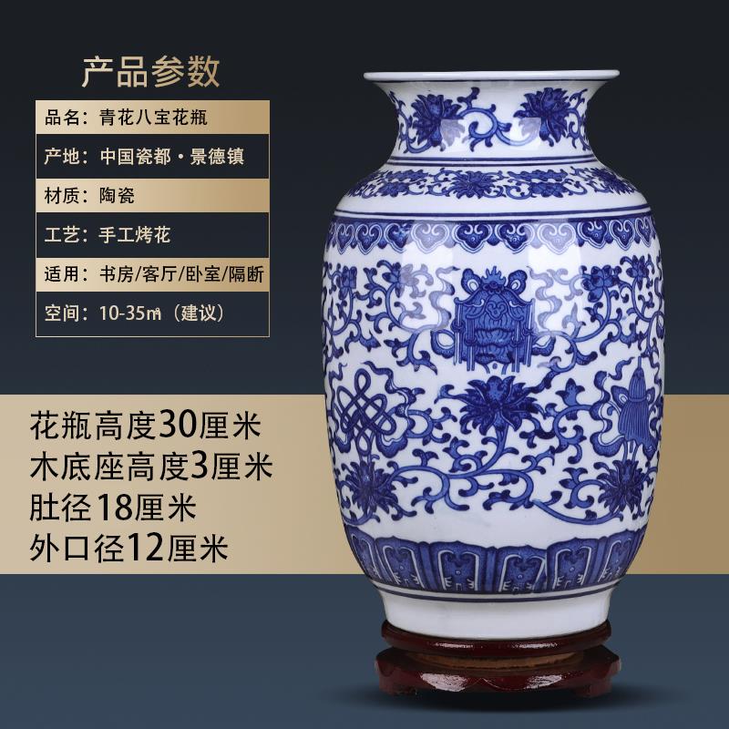 景德镇陶瓷器花瓶插花摆件青花瓷彷古中式家居客厅博古架小装饰品