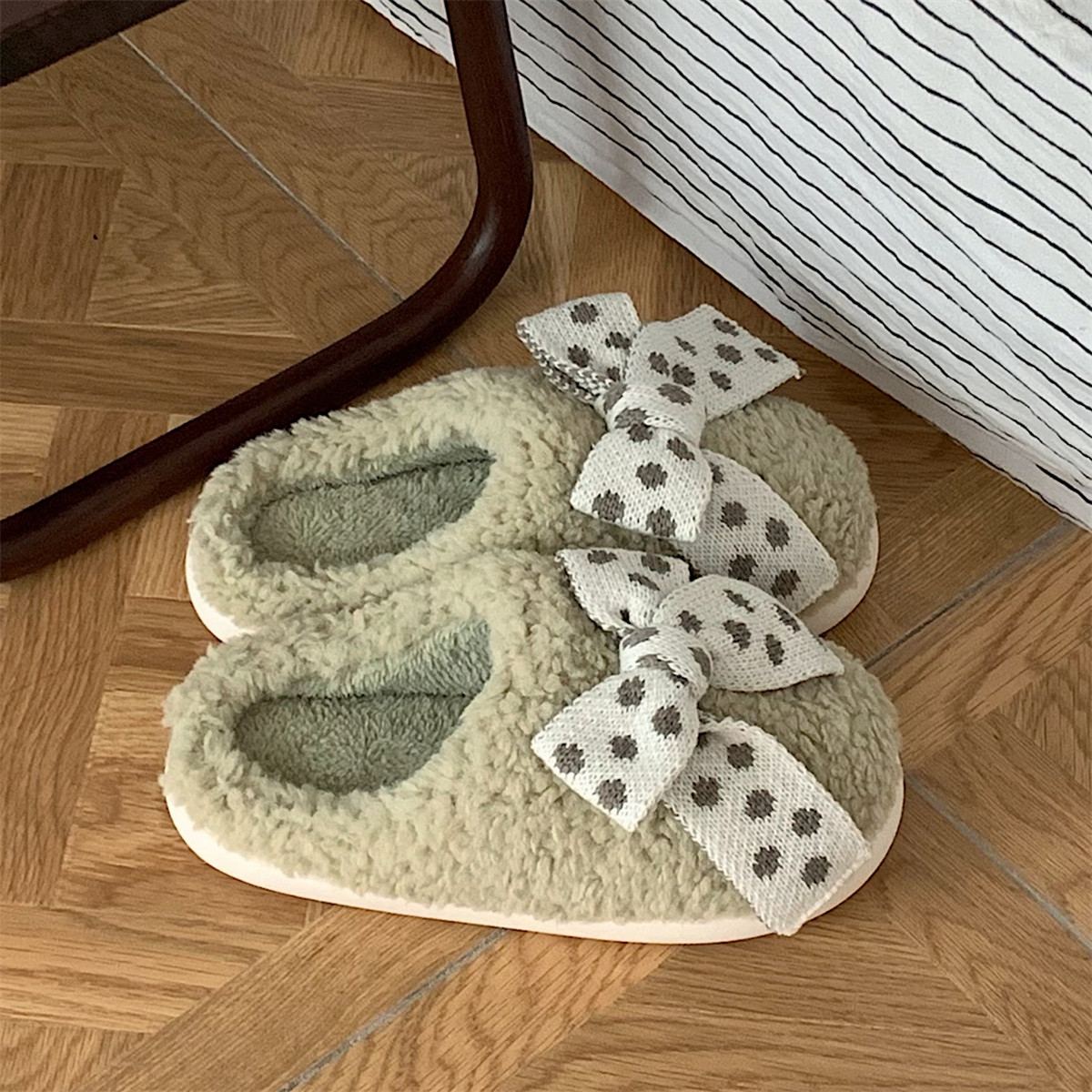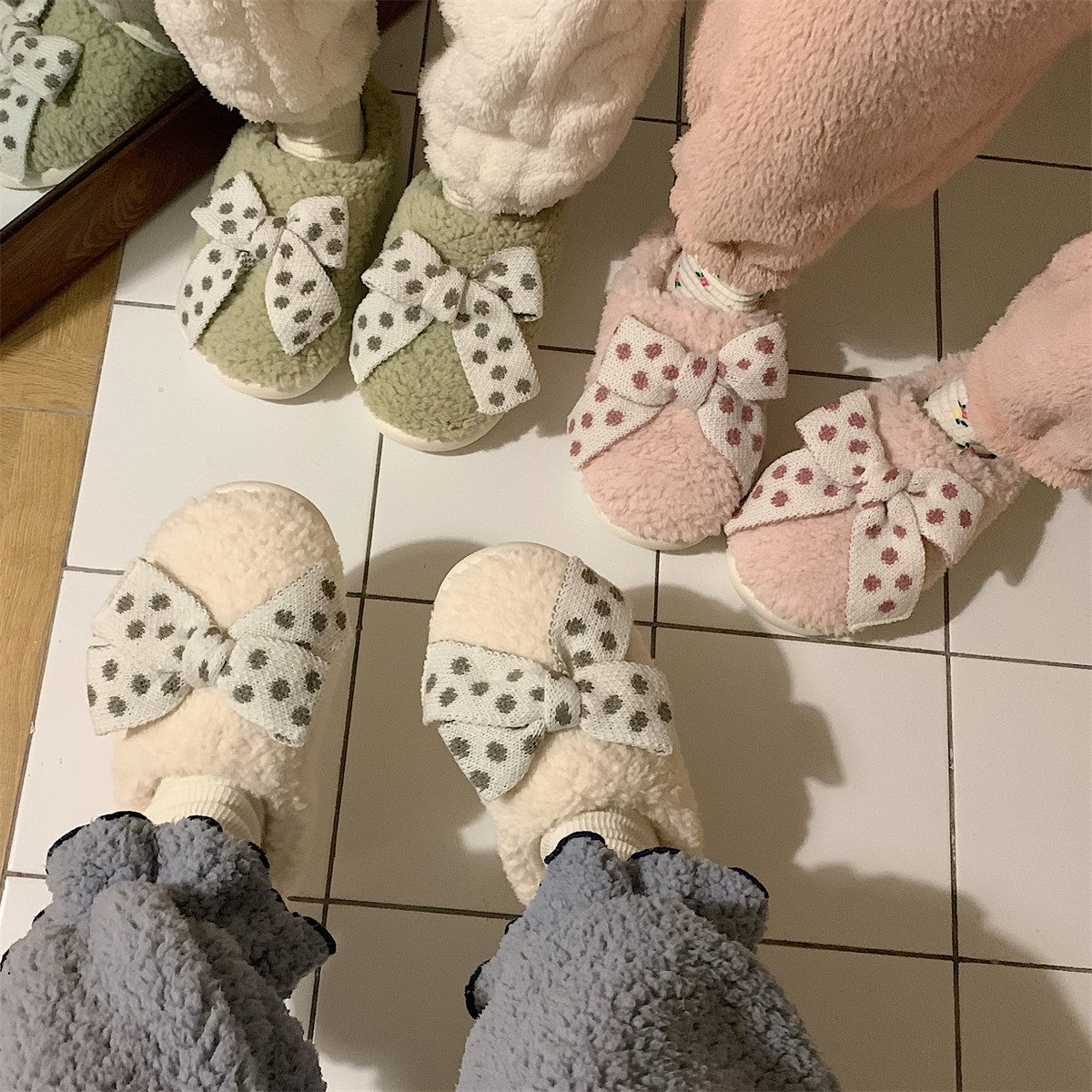 细细条 少女心ins蝴蝶结棉拖鞋女冬居家可爱毛绒绒防滑保暖月子鞋