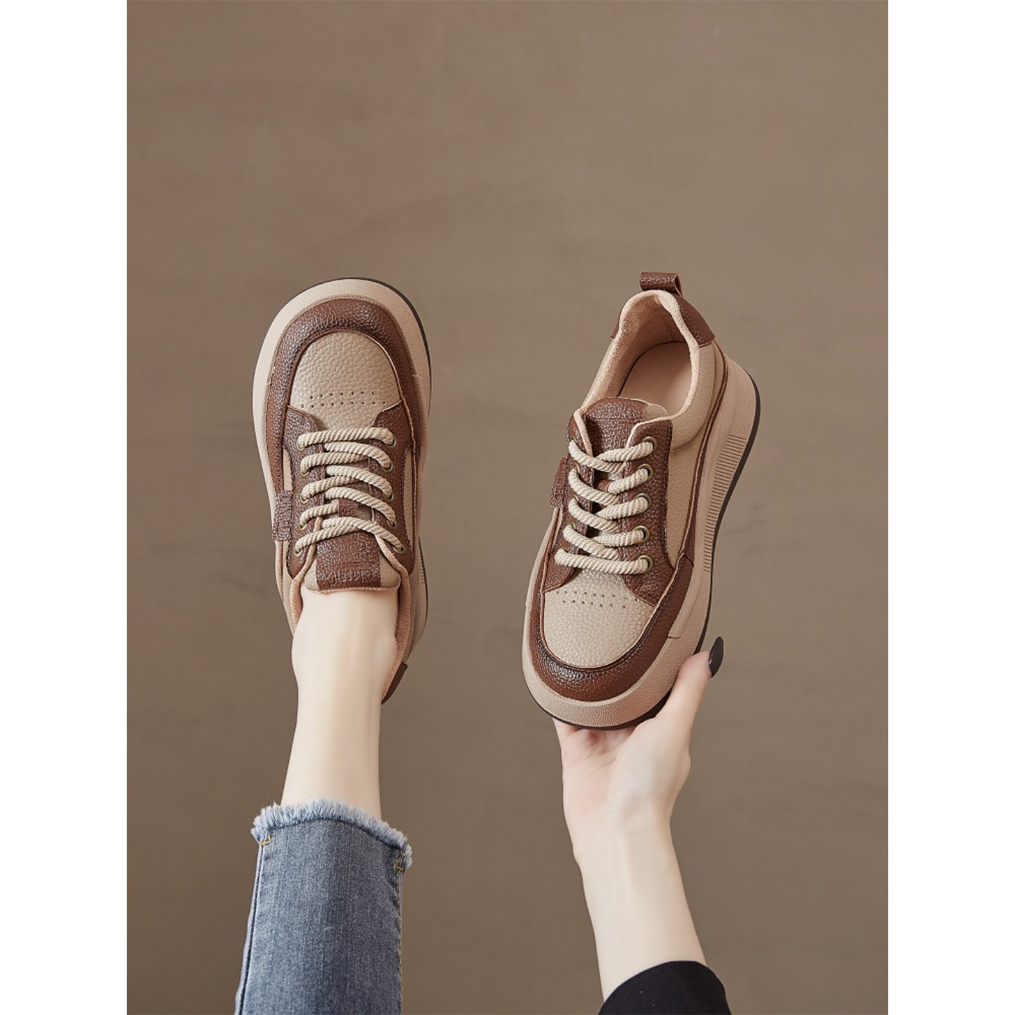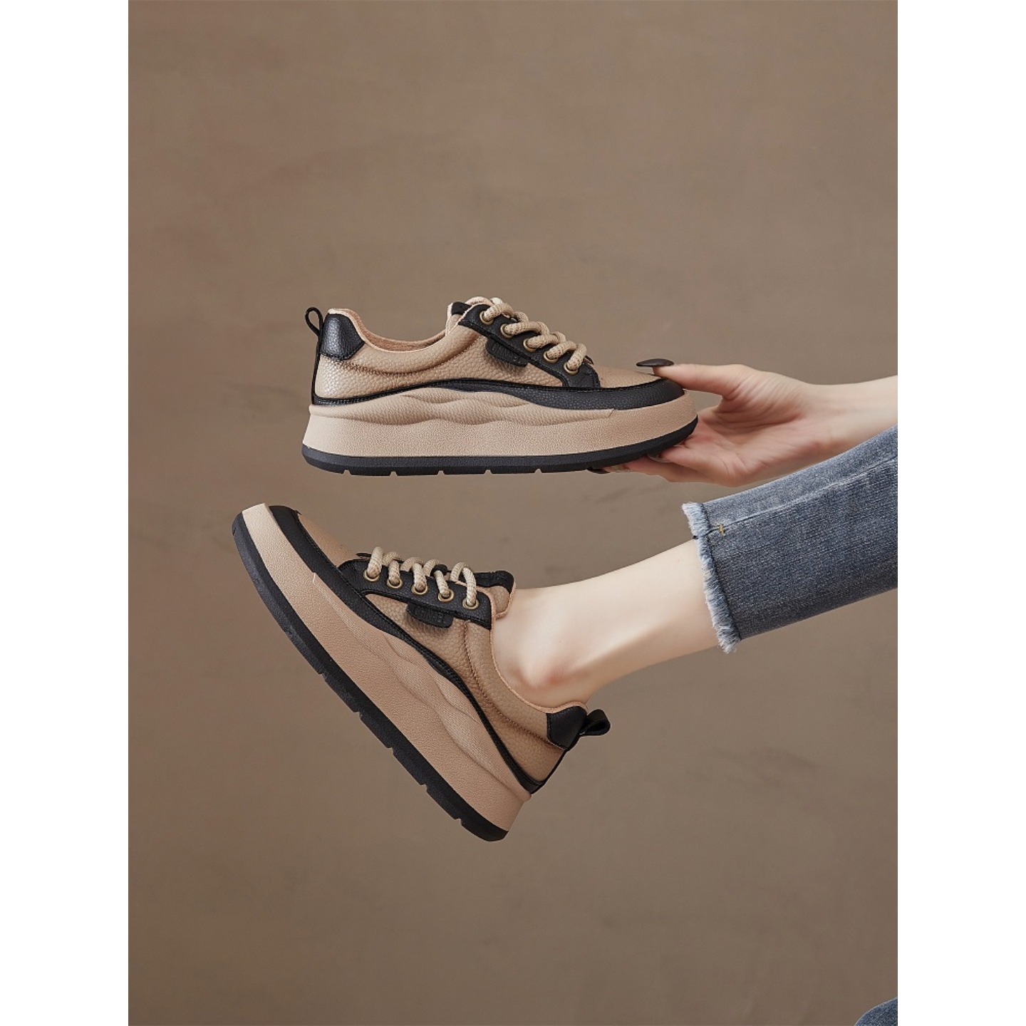 SUNVIBE复古真皮休闲板鞋女